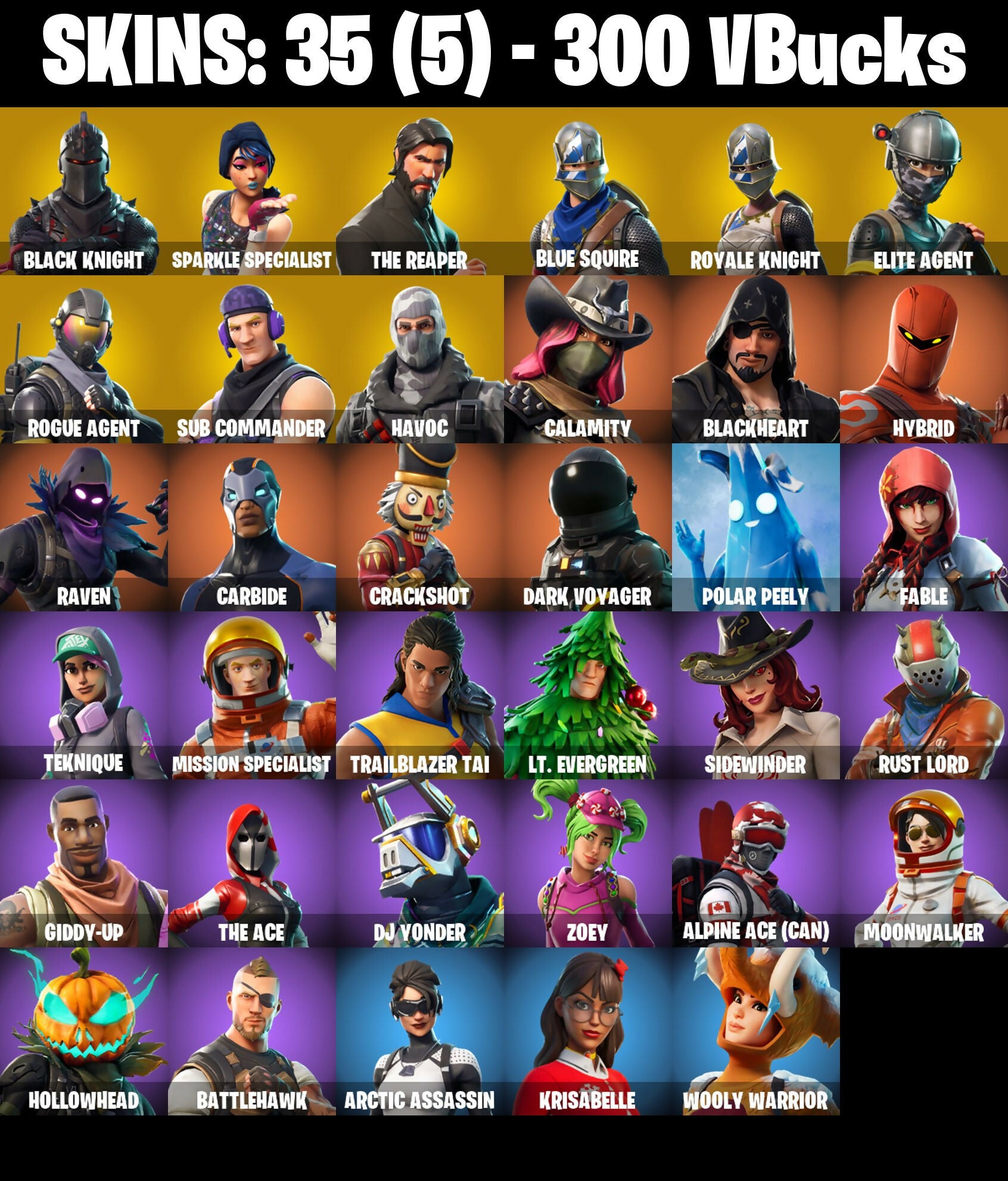 🎆35 SKINS ⚡️PC⚡️ BLACK KNIGHT 👑 SPARKLE SPECIALIST 👑 THE REAPER 👑 BLUE SQUIRE 👑 ROYALE KNIGHT 👑 ELITE AGENT 👑 ROGUE AGENT 👑 SUB COMMANDER ⚡️ 300 VB 📧 MAIL CHANGEABLE SOON #M554