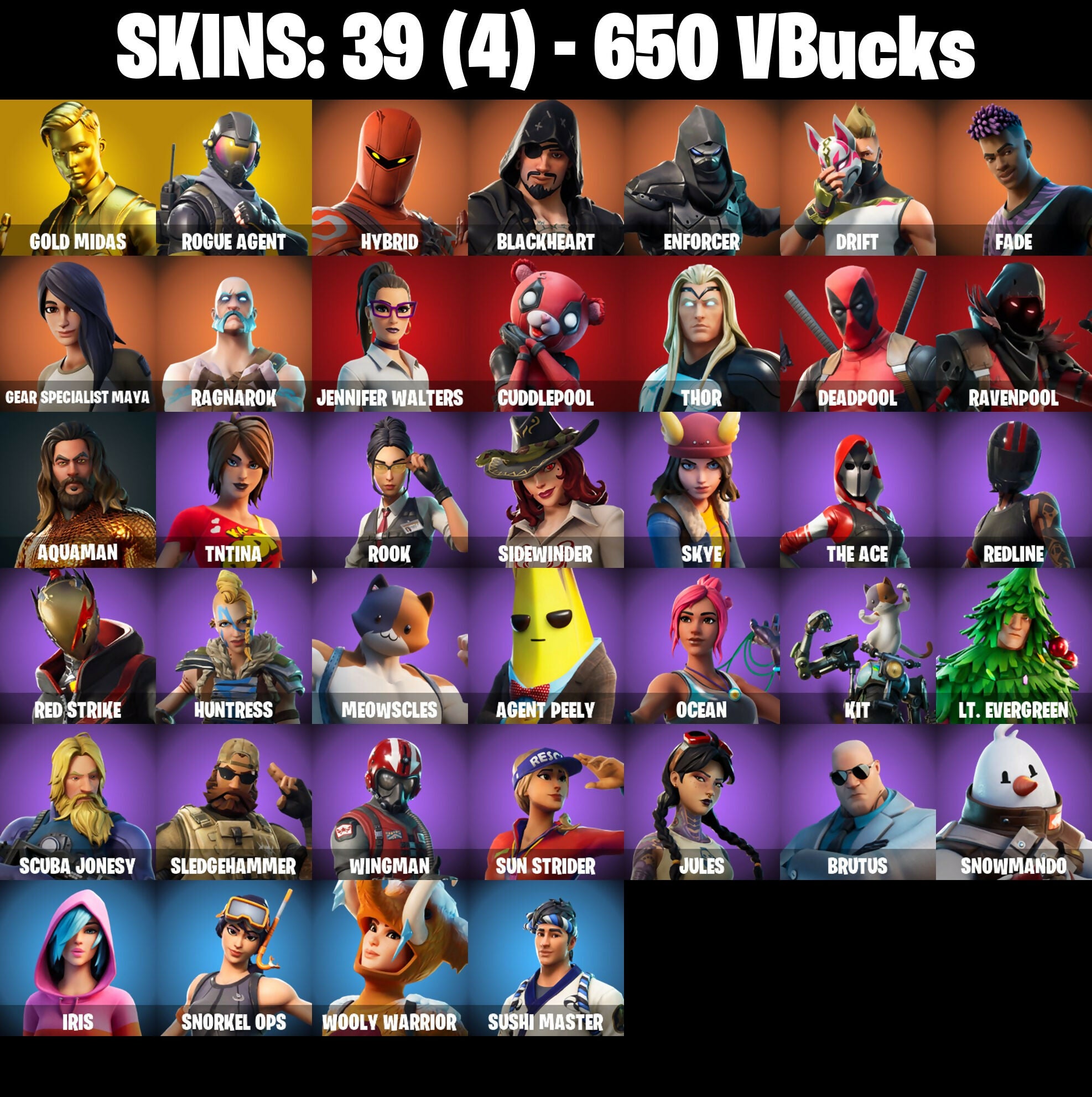🎆39 SKINS ⚡️PC⚡️ GOLD MIDAS 👑 ROGUE AGENT 👑 HYBRID 👑 BLACKHEART 👑 ENFORCER 👑 DRIFT 👑 FADE 👑 GEAR SPECIALIST MAYA 👑 RAGNAROK ⚡️ 650 VB 📧 MAIL CHANGEABLE #M316