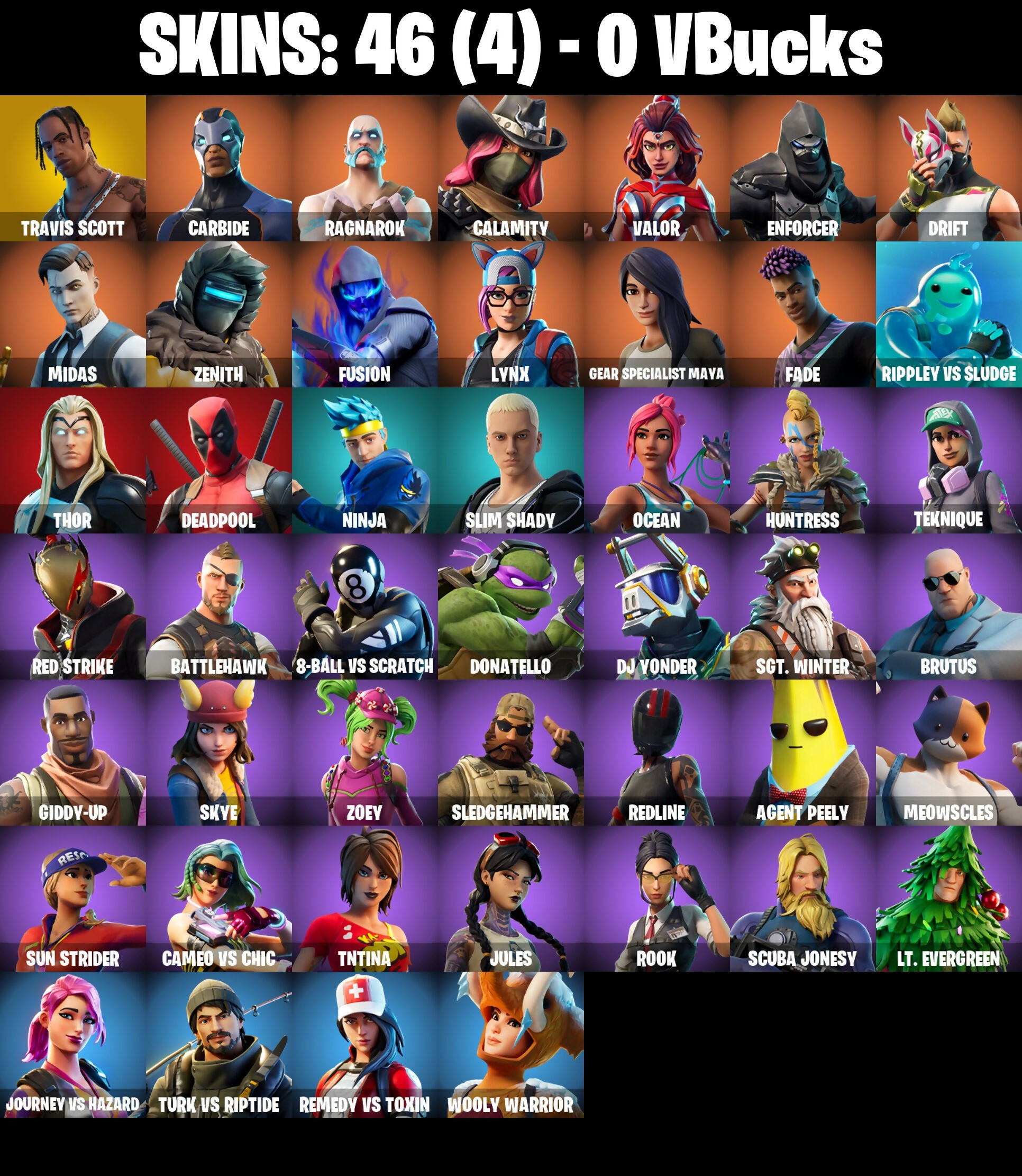 🎆46 SKINS ⚡️PC/PSN/XBOX⚡️ TRAVIS SCOTT 👑 CACTUS JACK 👑 VERVE 👑 ORANGE JUSTICE 👑 RAGE 👑 TAKE THE ELF 👑 ASTROWORLD CYCLONE 👑 BATTLE BUS ⚡️ 📧 MAIL CHANGEABLE 0 VB #M381