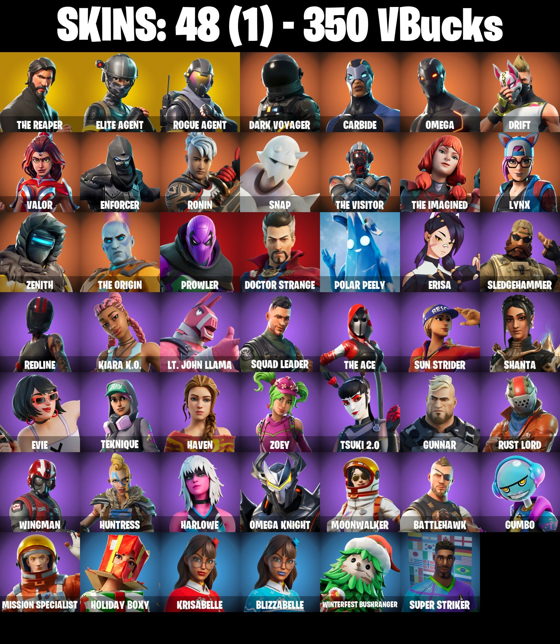 🎆48 SKINS ⚡️PC⚡️ THE REAPER 👑 ELITE AGENT 👑 ROGUE AGENT 👑 DARK VOYAGER 👑 CARBIDE 👑 OMEGA 👑 DRIFT 👑 VALOR 👑 ENFORCER 👑 RONIN 👑 SNAP ⚡️ 350 VB 📧 MAIL CHANGEABLE #M472