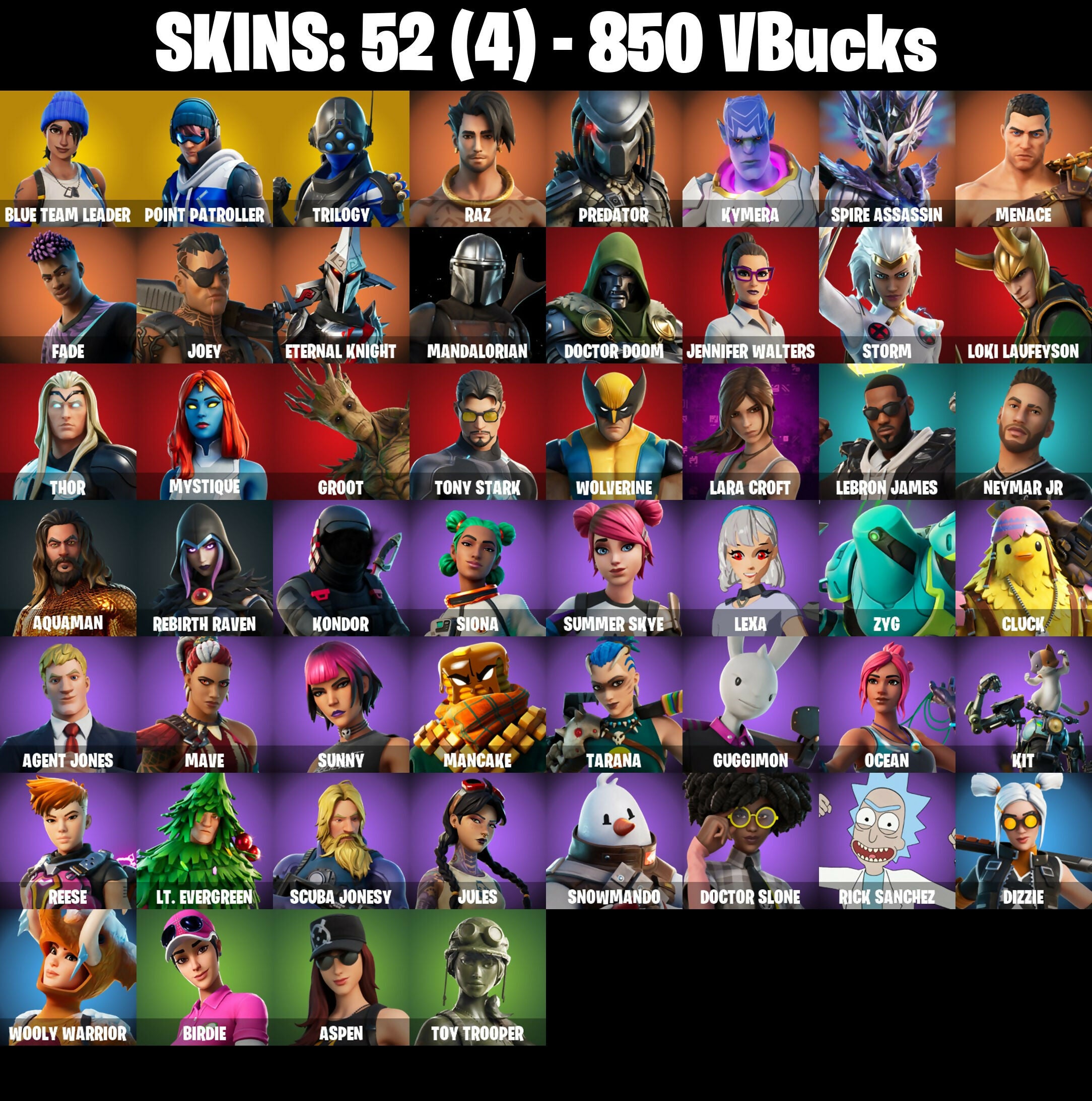 🎆52 SKINS ⚡️PC⚡️ BLUE TEAM LEADER 👑 POINT PATROLLER 👑 TRILOGY 👑 RAZ 👑 PREDATOR 👑 KYMERA 👑 SPIRE ASSASSIN 👑 MENACE 👑 FADE 👑 JOEY ⚡️ 850 VB 📧 MAIL CHANGEABLE #M333
