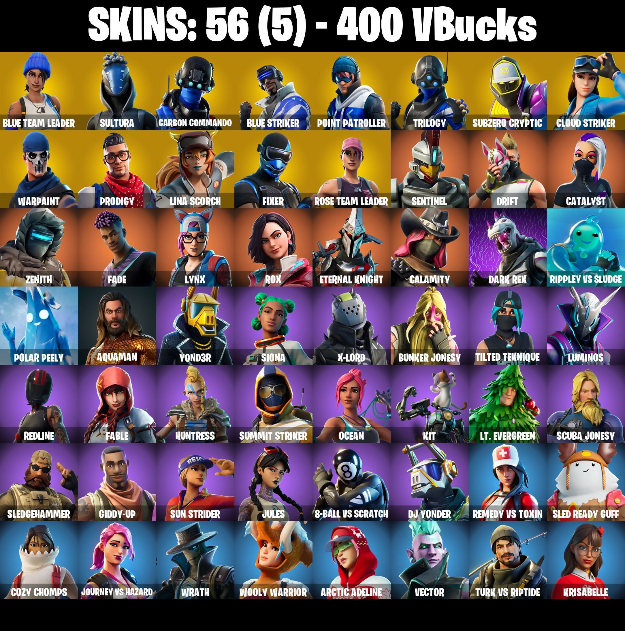 🎆56 SKINS ⚡️PC⚡️ BLUE TEAM LEADER 👑 SULTURA 👑 CARBON COMMANDO 👑 BLUE STRIKER 👑 POINT PATROLLER 👑 TRILOGY 👑 SUBZERO CRYPTIC 👑 CLOUD STRIKER ⚡️ 400 VB 📧 MAIL CHANGEABLE #M304
