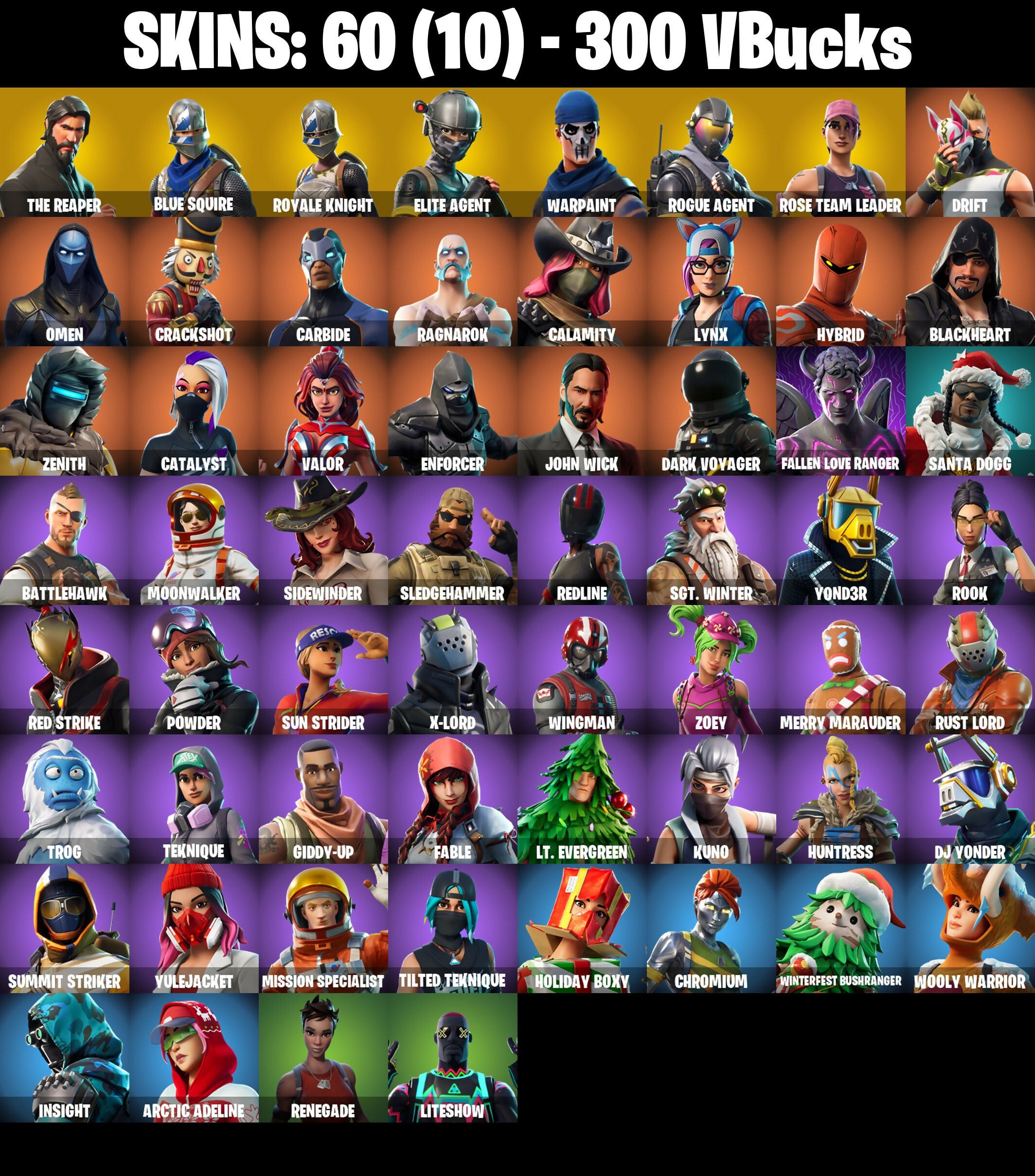 🎆60 SKINS ⚡️PC/PSN⚡️ THE REAPER 👑 BLUE SQUIRE 👑 ROYALE KNIGHT 👑 ELITE AGENT 👑 ROGUE AGENT 👑 DRIFT 👑 OMEN 👑 CRACKSHOT 👑 CARBIDE 👑 RAGNAROK ⚡️ 300 VB 📧 MAIL CHANGEABLE SOON #M481