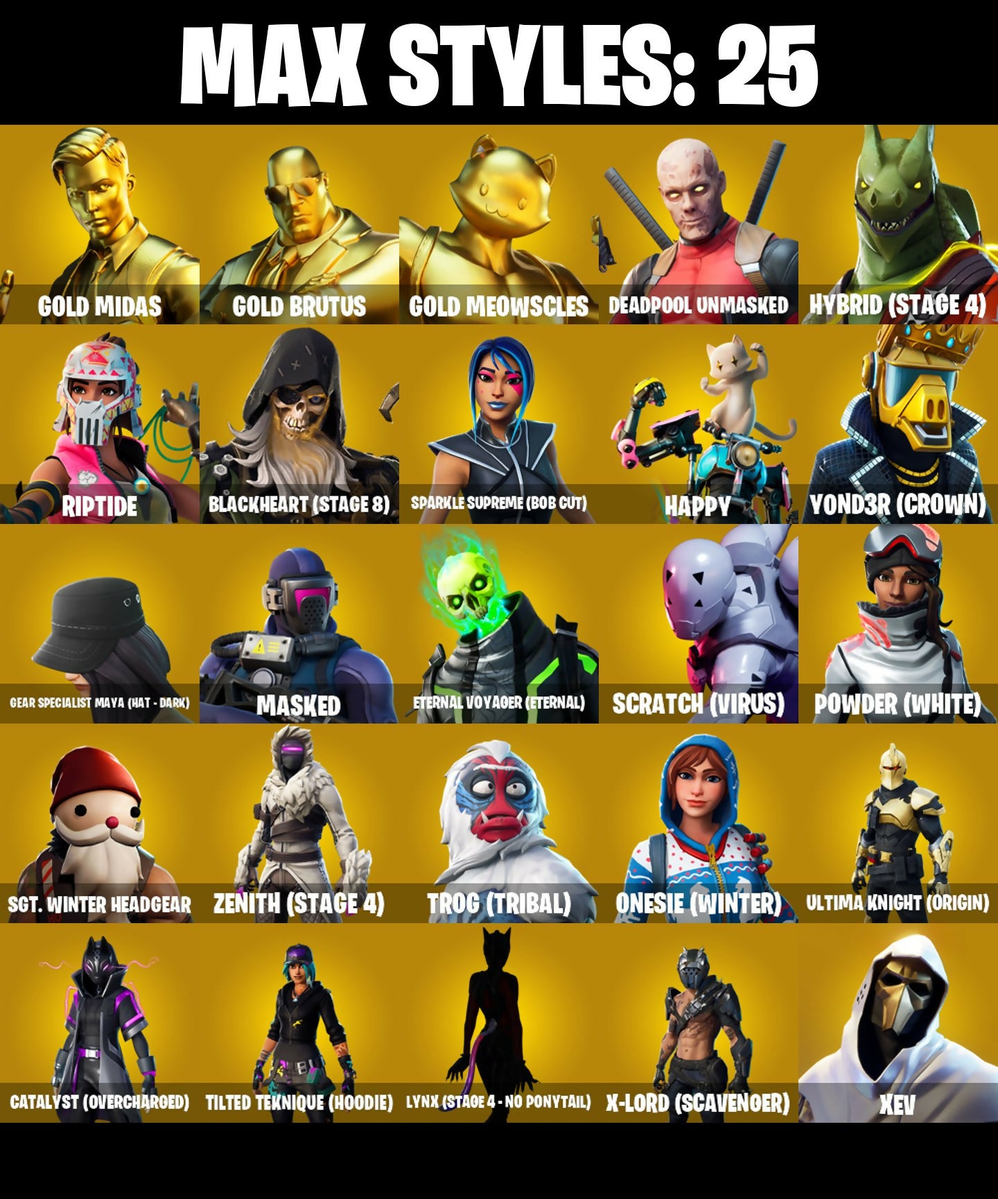 🎆67 SKINS ⚡️PC⚡️ GOLD MIDAS 👑 GOLD BRUTUS 👑 GOLD MEOWSCLES 👑 ARK 👑 CRACKSHOT 👑 FUSION 👑 HYBRID 👑 ULTIMA KNIGHT 👑 GEAR SPECIALIST MAYA 👑 FADE ⚡️ 400 VB 📧 MAIL CHANGEABLE #M167