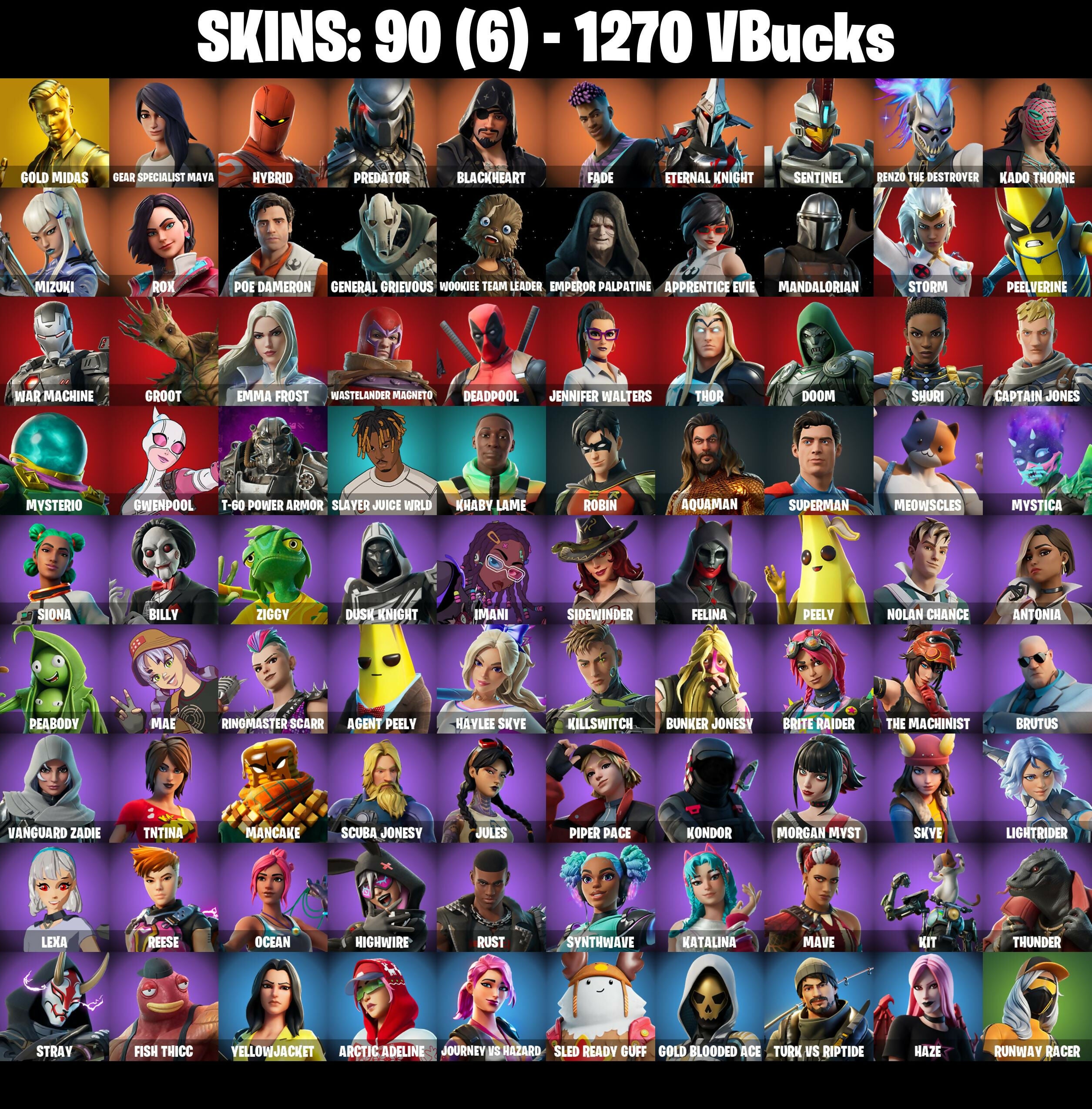 🎆90 SKINS ⚡️PC/PSN⚡️ GOLD MIDAS 👑 GEAR SPECIALIST MAYA 👑 HYBRID 👑 PREDATOR 👑 BLACKHEART 👑 FADE 👑 ETERNAL KNIGHT 👑 SENTINEL ⚡️ 1270 VB 📧 MAIL CHANGEABLE SOON #M445