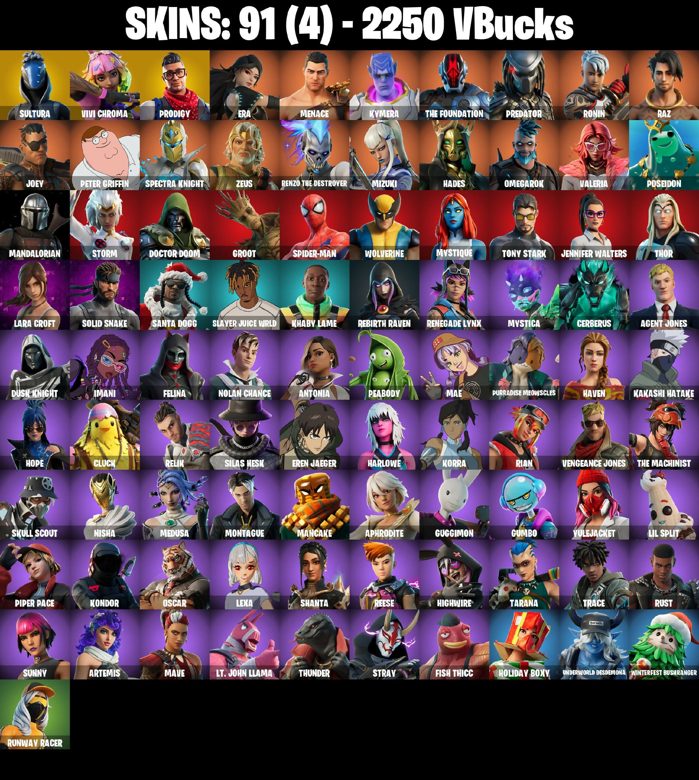 🎆91 SKINS ⚡️PC/XBOX⚡️ SULTURA 👑 VIVI CHROMA 👑 PRODIGY 👑 ERA 👑 MENACE 👑 KYMERA 👑 THE FOUNDATION 👑 PREDATOR 👑 RONIN 👑 RAZ 👑 JOEY ⚡️ 2250 VB 📧 MAIL CHANGEABLE SOON #M444
