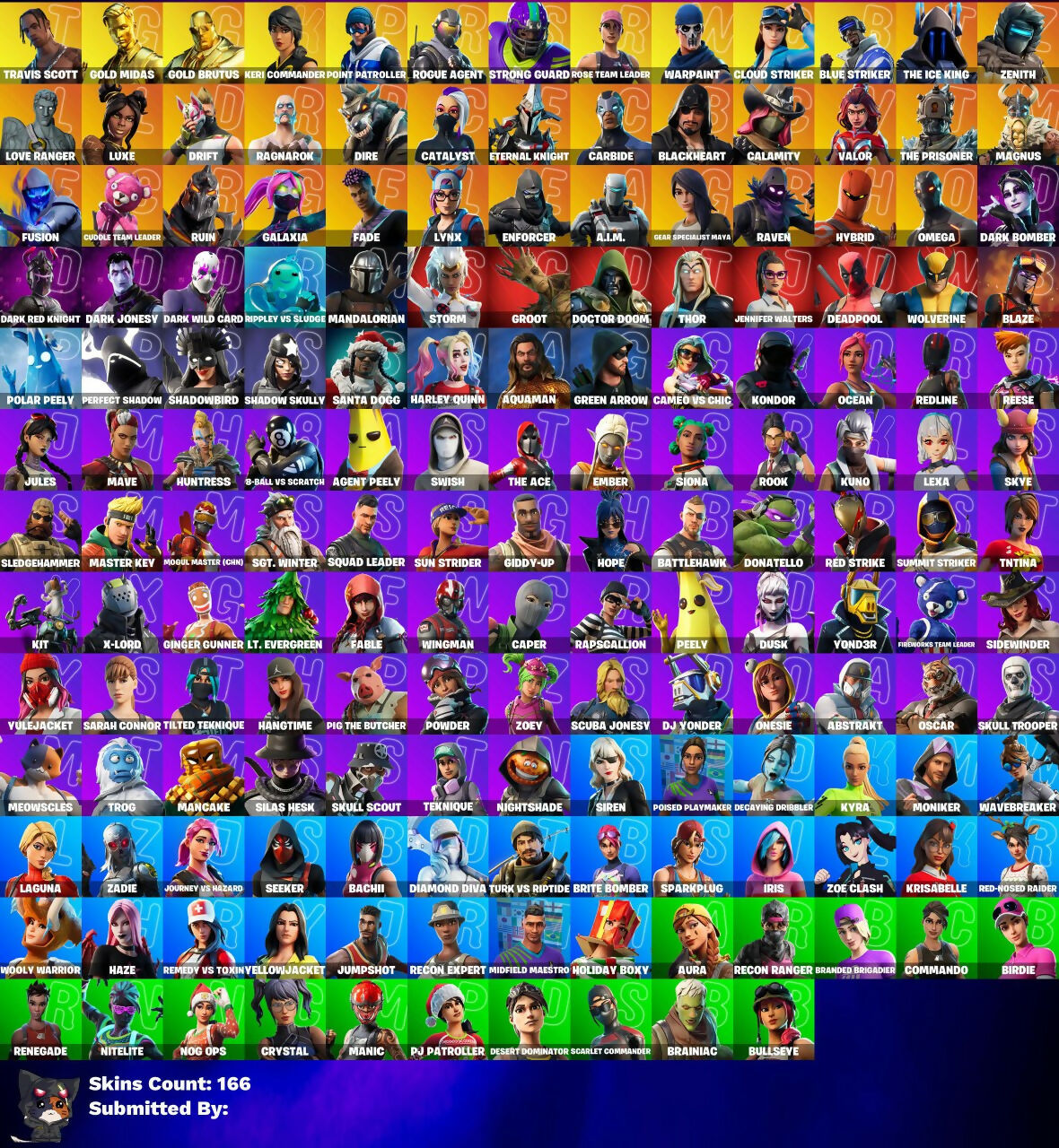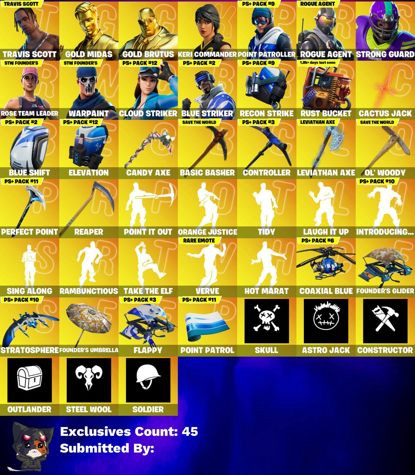💥🌟 EXCLUSIVE OFFER 🌟💥 166 SKINS 💎 TRAVIS SCOTT 💎 GOLD MIDAS 💎 OG STW 💎 KERI COMMANDER 💎 POINT PATROLLER 💎 ROGUE AGENT 💎 STRONG GUARD 💎 CANDY AXE 💎 FULL ACCESS 💎