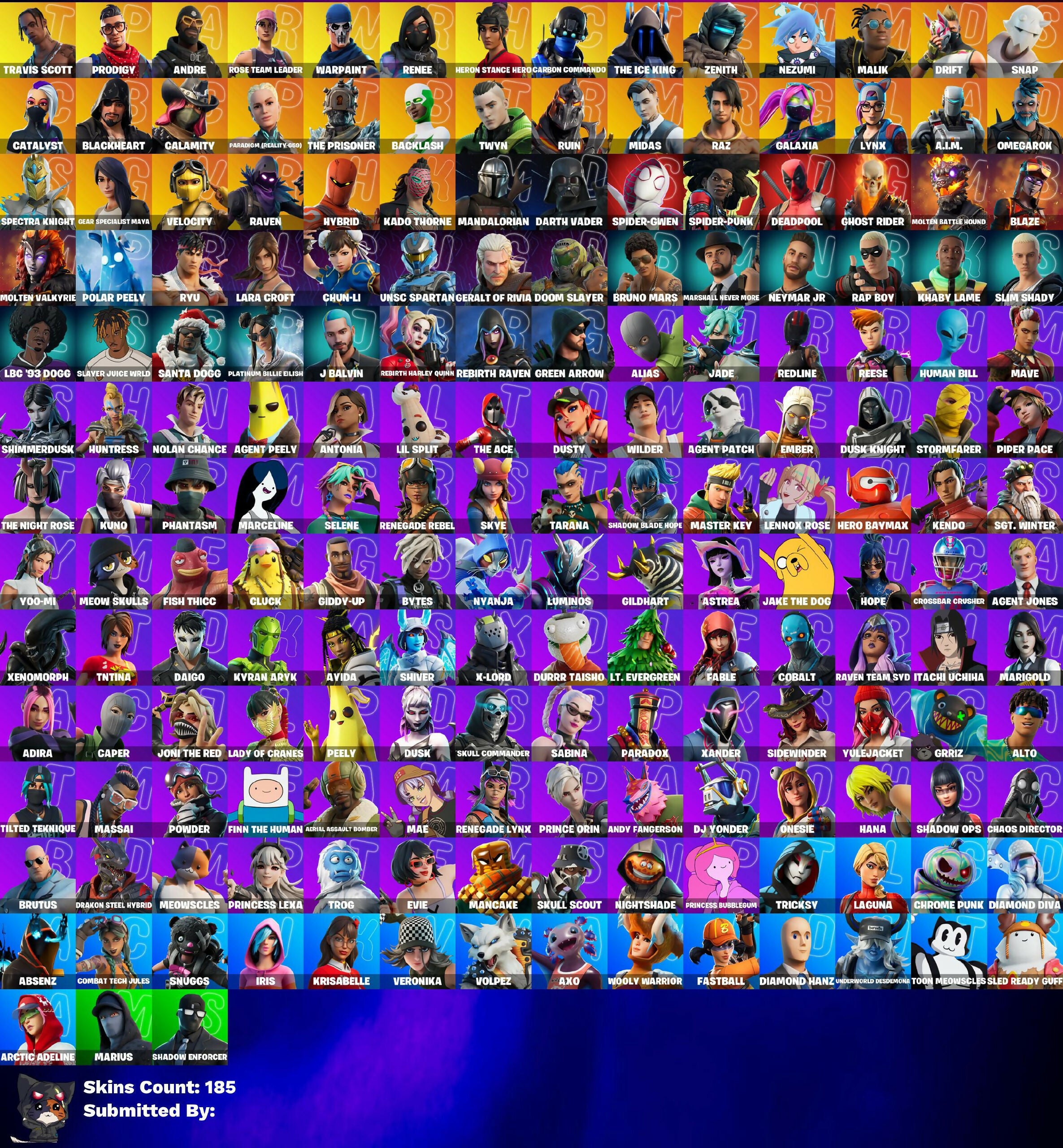 💥🌟 EXCLUSIVE OFFER 🌟💥 185 SKINS 💎 TRAVIS SCOTT 💎 PRODIGY 💎 ANDRE 💎 RENEE 💎 HERON STANCE HERO 💎 CARBON COMMANDO 💎 THE ICE KING 💎 ZENITH 💎 NEZUMI 💎 MALIK 💎 DRIFT 💎 FULL ACCESS 💎