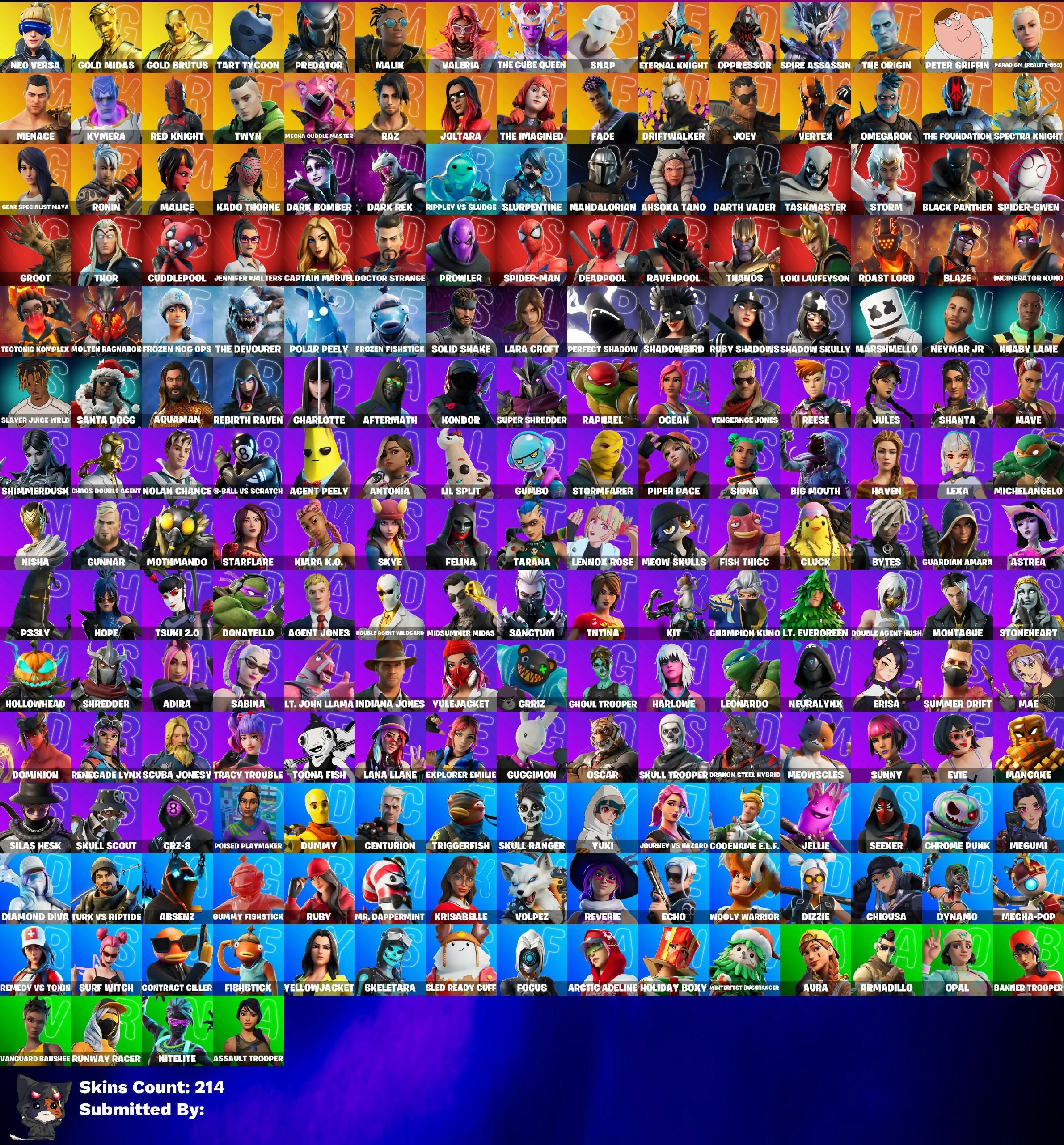 💥🌟 LEGEND OFFER 🌟💥 214 SKINS 💎 NEO VERSA 💎 GOLD MIDAS 💎 GOLD BRUTUS 💎 TART TYCOON 💎 PREDATOR 💎 MALIK 💎 VALERIA 💎 THE CUBE QUEEN 💎 SNAP 💎 ETERNAL KNIGHT 💎 OPPRESSOR 💎 FULL ACCESS 💎