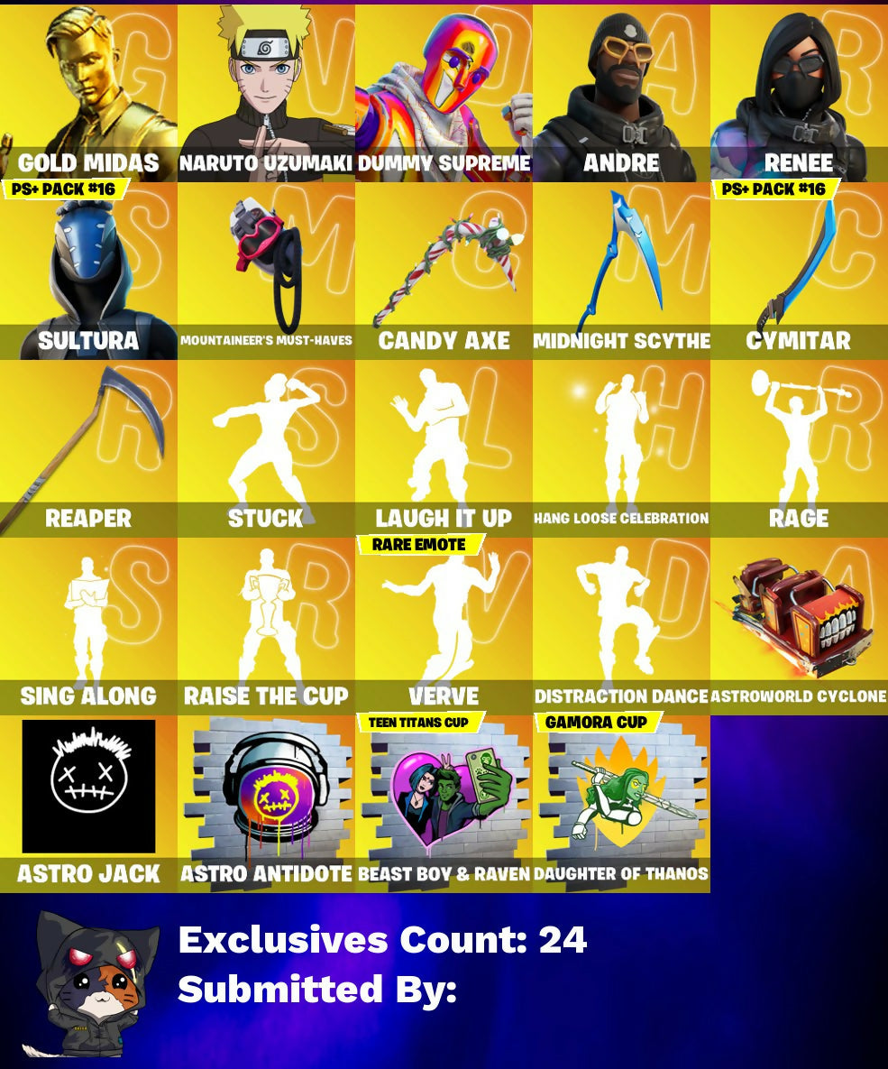 💥🌟 LEGEND OFFER 🌟💥 270 SKINS 💎 RENEGADE RAIDER 💎 GOLD MIDAS 💎 NARUTO UZUMAKI 💎 DUMMY SUPREME 💎 ANDRE 💎 RENEE 💎 SULTURA 💎 TORIN 💎 JOHN WICK 💎 NEZUMI 💎 MALIK 💎 FULL ACCESS 💎