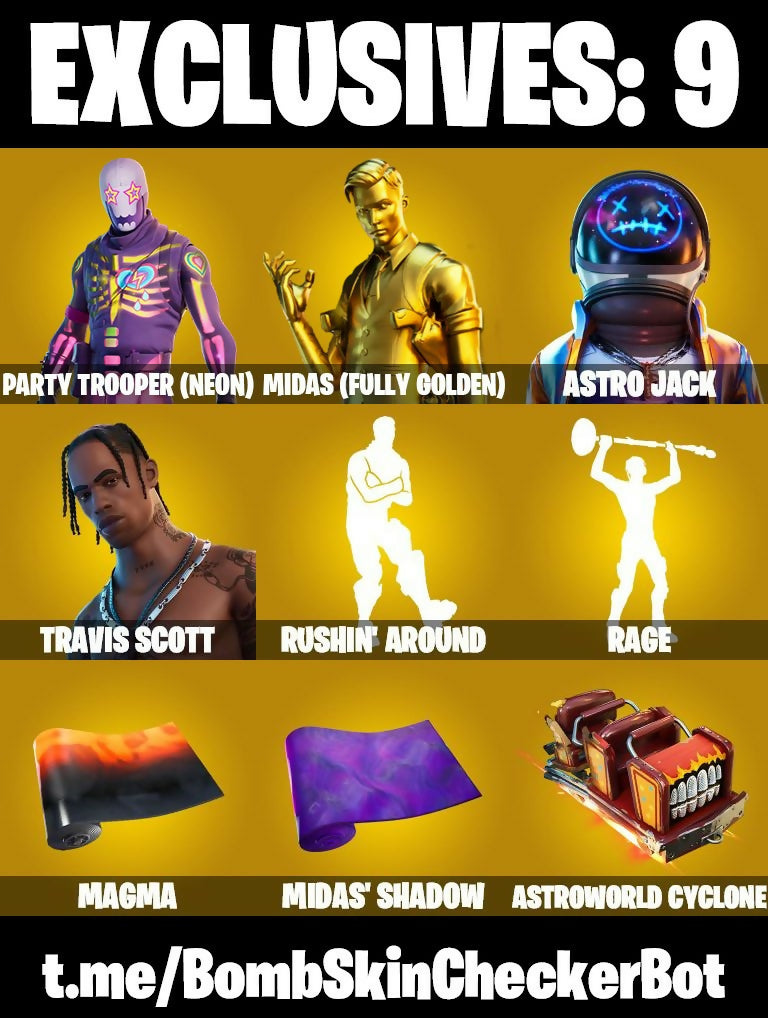 【270 SKINS】 TRAVIS SCOTT❤️ASTRO JACK❤️GOLD MIDAS❤️PARTY TROOPER (NEON)❤️ (PC/PSN/XBOX)