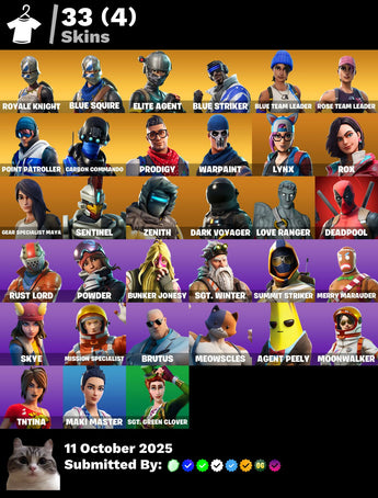33 Skins โญ๏ธ OG STW - Royale Knight - Blue Squire - Elite Agent - Take The L - Blue Striker - Deadpool - Lynx - Skye - Meowscles - TNTina - Blue Team Leader