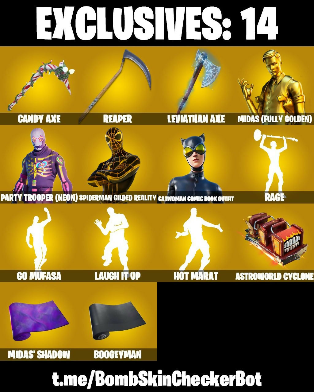【369 SKINS】GOLD MIDAS❤️PARTY TROOPER (NEON)❤️ SPIDERMEN GILDED REALITY❤️ CANDY AXE❤️ PARENTAL CONTROL ❤️ (PC/PSN/XBOX)