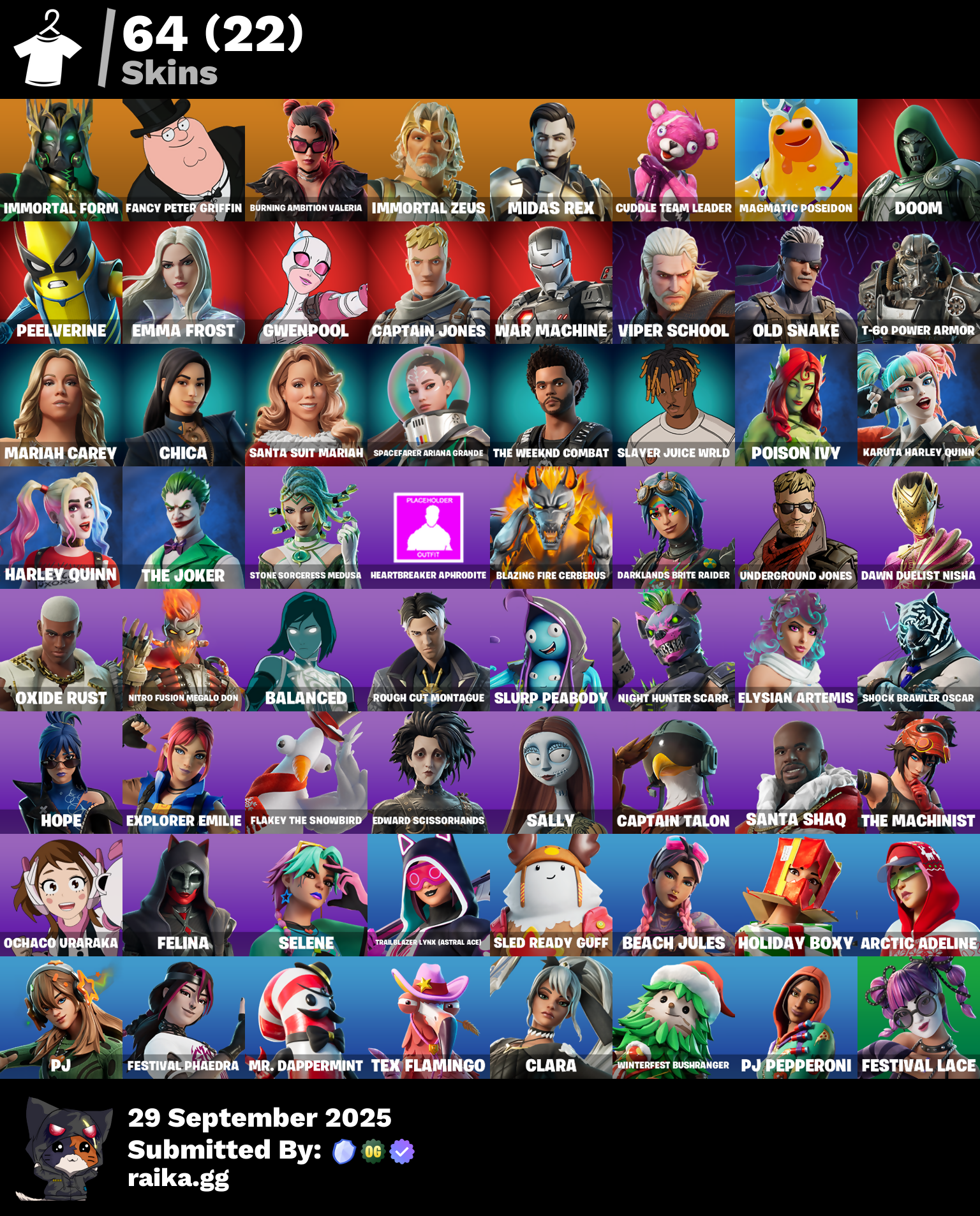 64 TOP SKINS [PC/PSN/XBOX]|IMMORTAL FORM ✅ FANCY PETER GRIFFIN ✅ BURNING AMBITION VALERIA ✅ IMMORTAL ZEUS ✅ MIDAS REX ✅ CUDDLE TEAM LEADER