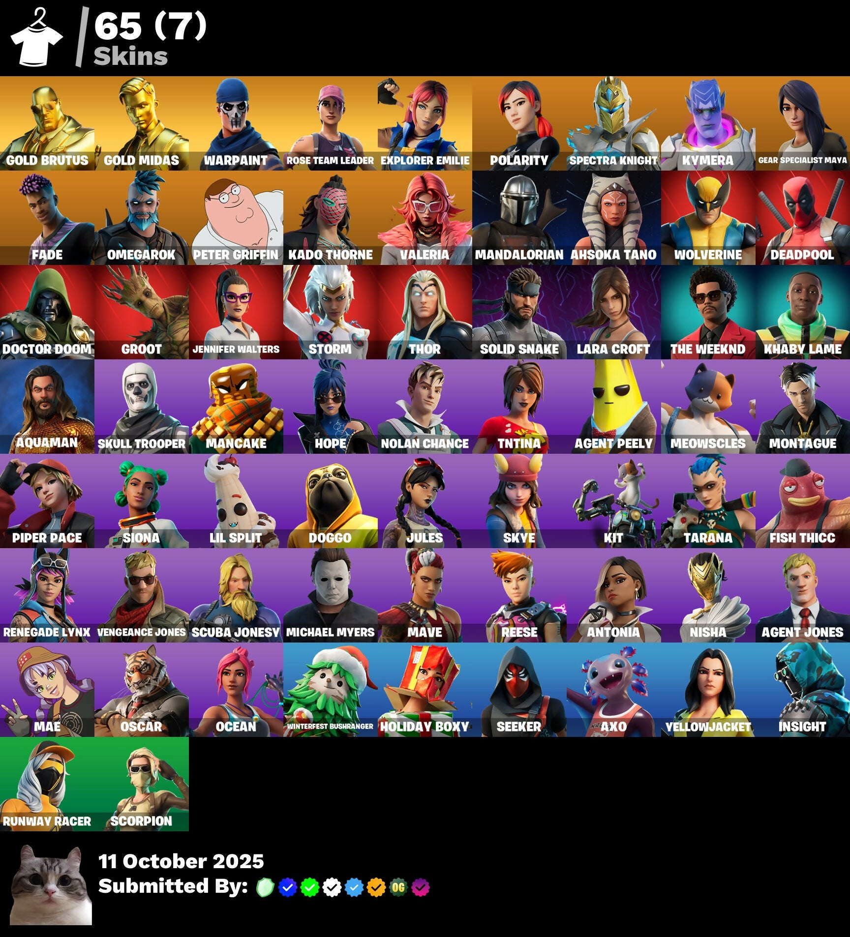 65 Skins โญ๏ธ OG STW - Lara Croft - Polarity - Skull Trooper - The Weeknd - Agent Jones - Deadpool - Orange Justice - Yellowjacket - Doggo - Skye - Jules