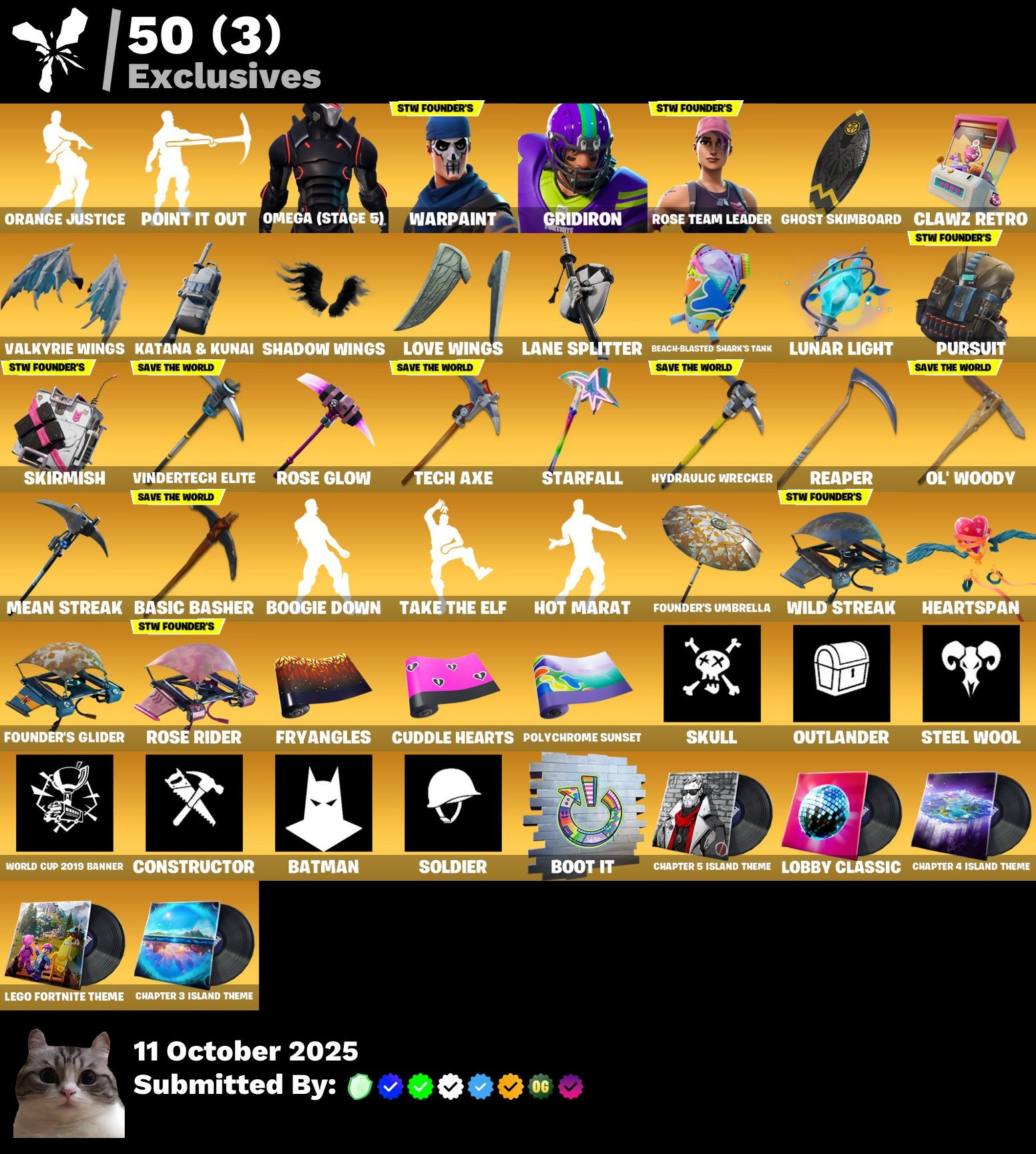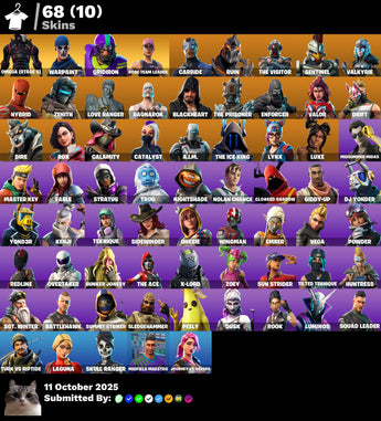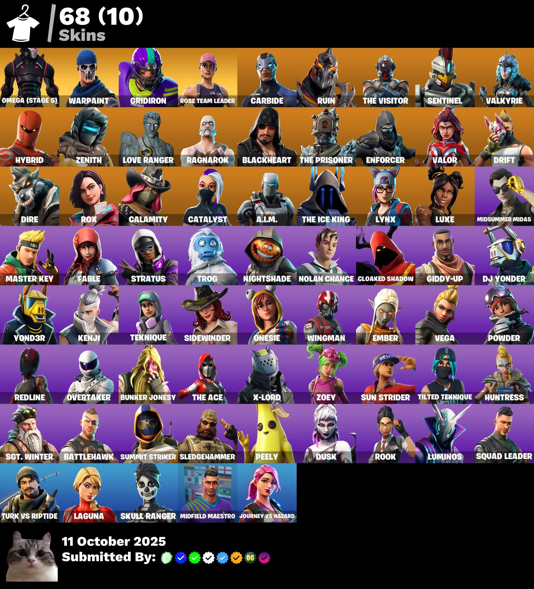 68 Skins โญ๏ธ OG STW - Peely - Luxe - Drift - Zoey - Tilted Teknique - Orange Justice - Cloaked Shadow - Midsummer Midas - Calamity - Onesie - Catalyst - Lynx