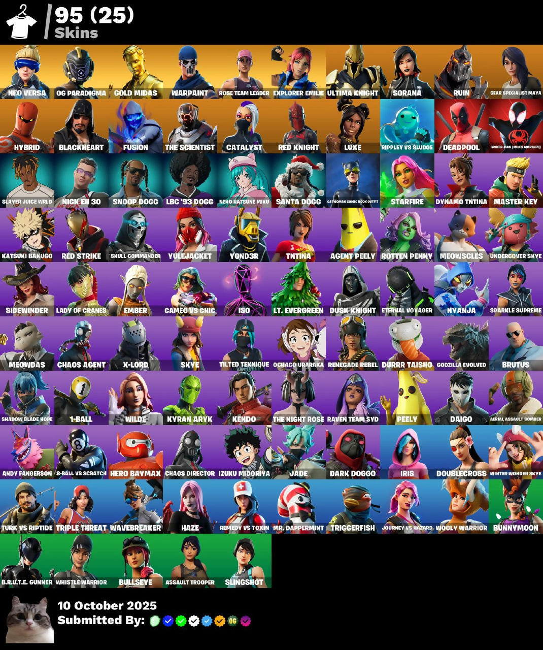 95 Skins โญ๏ธ OG STW - Deluxe Edition - Chaos Agent - Catwoman Comic Book Outfit - Snoop Dogg - Laugh It Up - Red Knight - Haze - Izuku Midoriya - Starfire