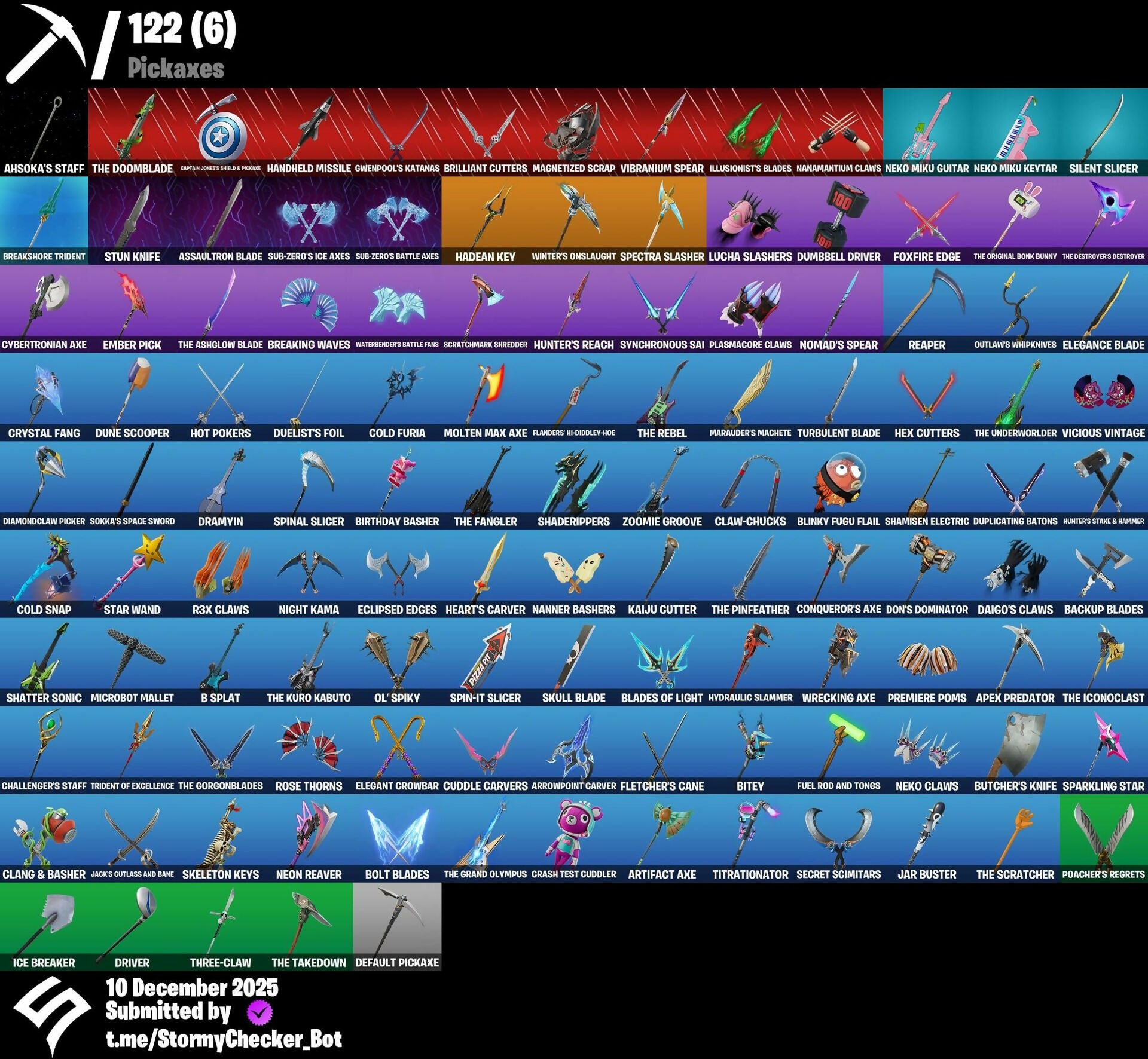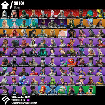 98 Skins | Solid Snake | Mariposa | Doom | Outlaw Midas | Oscar | Default Pickaxe | Reaper | Stun Knife | 200 VB