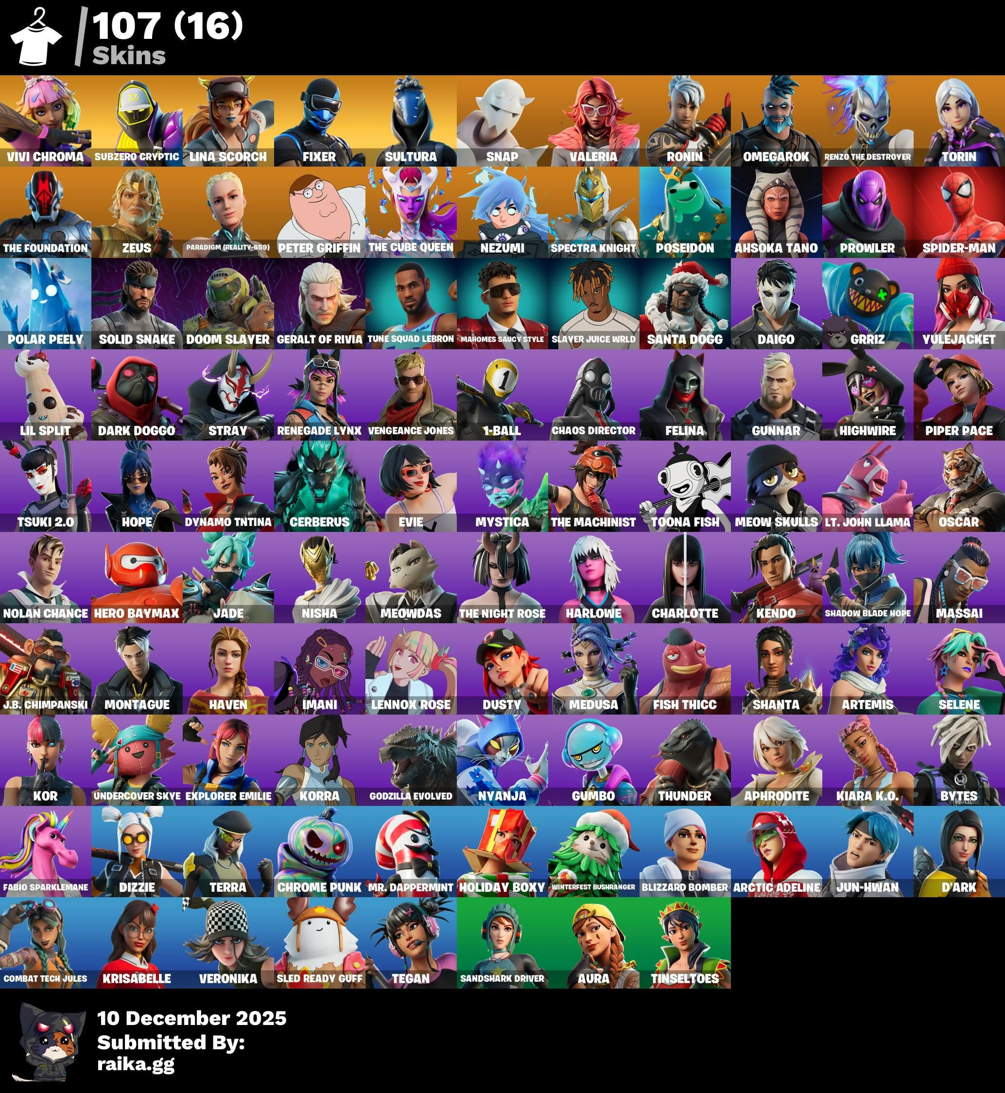 EPIC ACCOUNT (PC) 107 skins | Vivi Chroma | Subzero Cryptic | Lina Scorch | Fixer | Sultura | Snap | Valeria | Ronin | Omegarok | Renzo the Destroyer | Torin | 50 VB