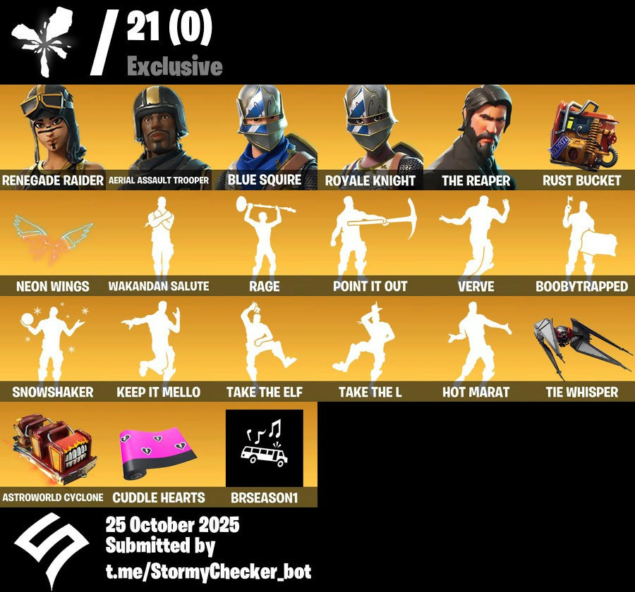 OG Fortnite Account☑️140 Skins☑️OG Renegade Raider (Black and Gold)☑️OG Aerial Assault Trooper (Black and Gold)☑️Blue Squire☑️Royale Knight☑️The Reaper☑️Midas☑️Joltara☑️Vision☑️Ice Breaker☑️Batsickle☑️Orange Justice☑️Hype☑️Take the L☑️Battle Bus Banner☑️