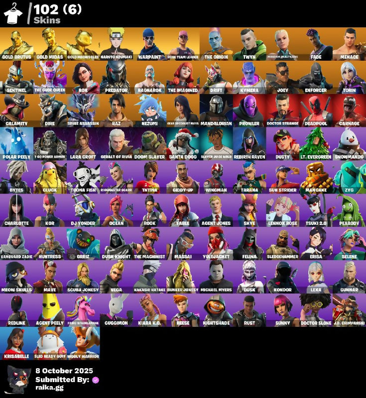 [PC] 102 skins | OG STW | Gold Brutus | Gold Midas | Gold Meowscles | Naruto Uzumaki | The Origin | Twyn | Paradigm (Reality-659) | Fade | Menace | 1600 VB