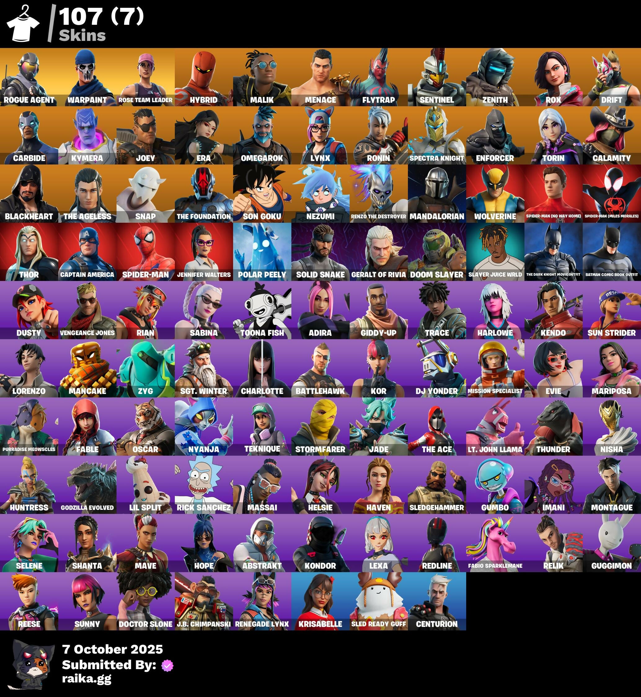 [PC] 107 skins | OG STW | Rogue Agent | Hybrid | Malik | Menace | Flytrap | Sentinel | Zenith | Rox | Drift | Carbide | Kymera | Joey | Era | Omegarok | 350 VB