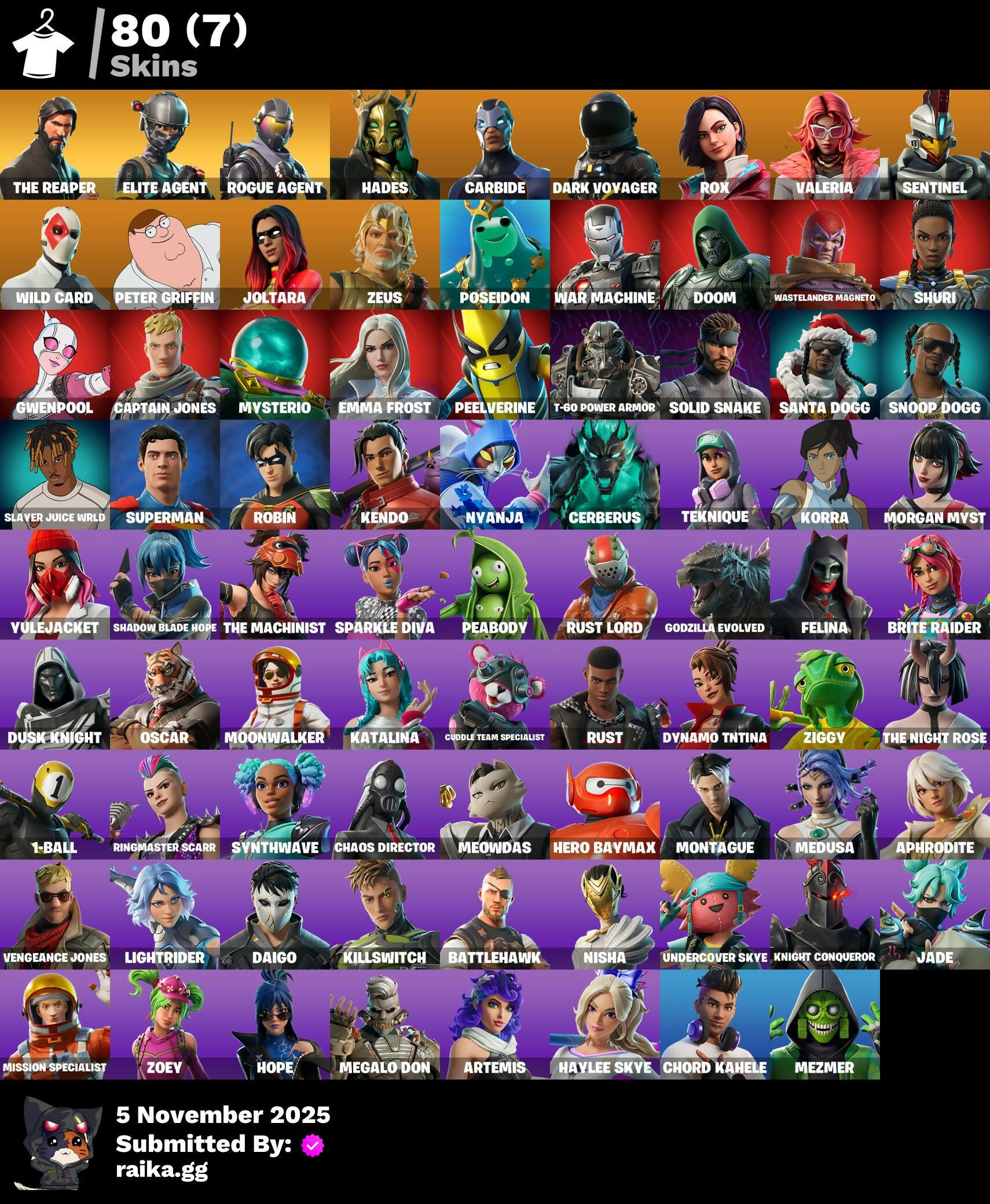 [PC] 80 skins | The Reaper | Elite Agent | Rogue Agent | Hades | Carbide | Dark Voyager | Rox | Valeria | Sentinel | Wild Card | Peter Griffin | 1050 VB