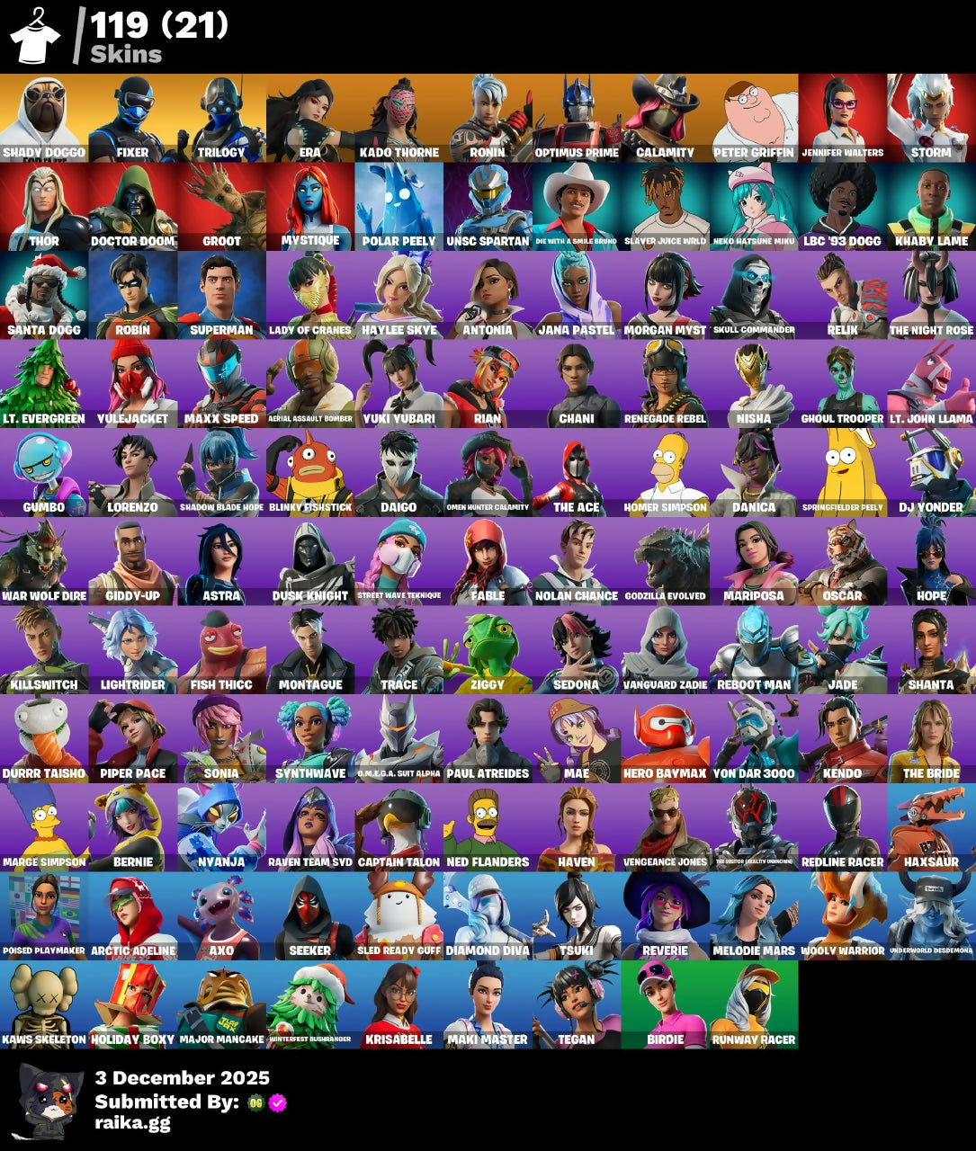 [PC/NITTENDO] 119 skins Shady Doggo | Fixer | Trilogy | Era | Kado Thorne | Ronin | Optimus Prime | Calamity | Peter Griffin | Jennifer Walters | Storm | 0 VB