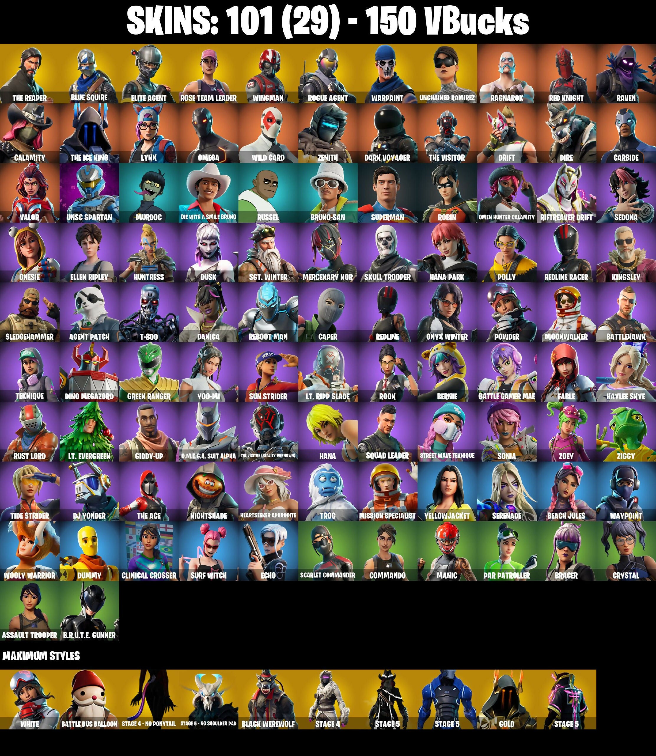 (PC/PSN) 150 VB) 101 skins | The Reaper | Blue Squire | Elite Agent | Wingman | Rogue Agent | Unchained Ramirez | Ragnarok | Red Knight | Raven