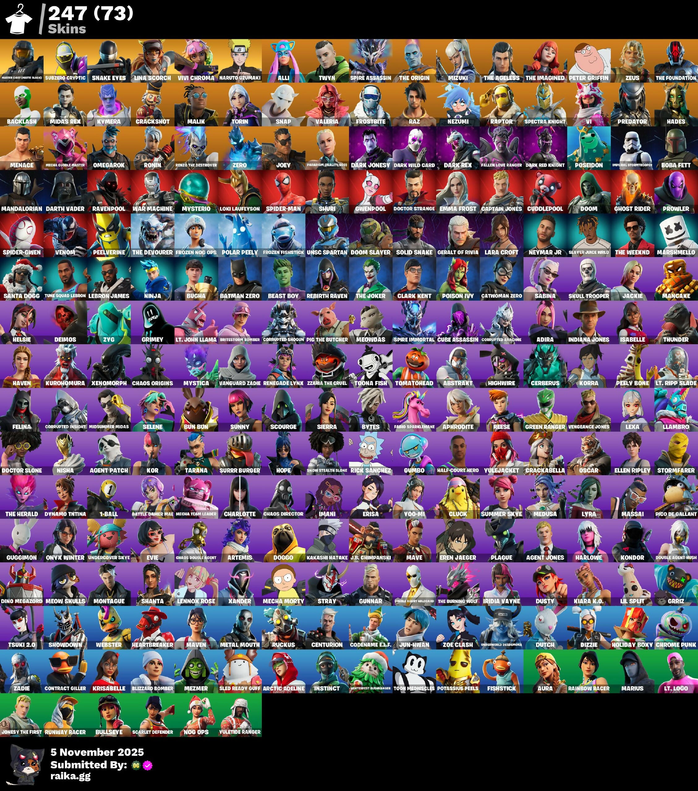 [PC/PSN/NITTENDO] 247 skins Master Chief (Matte Black) | Subzero Cryptic | Snake Eyes | Lina Scorch | Vivi Chroma | Naruto Uzumaki | Alli | Twyn | 1550 VB