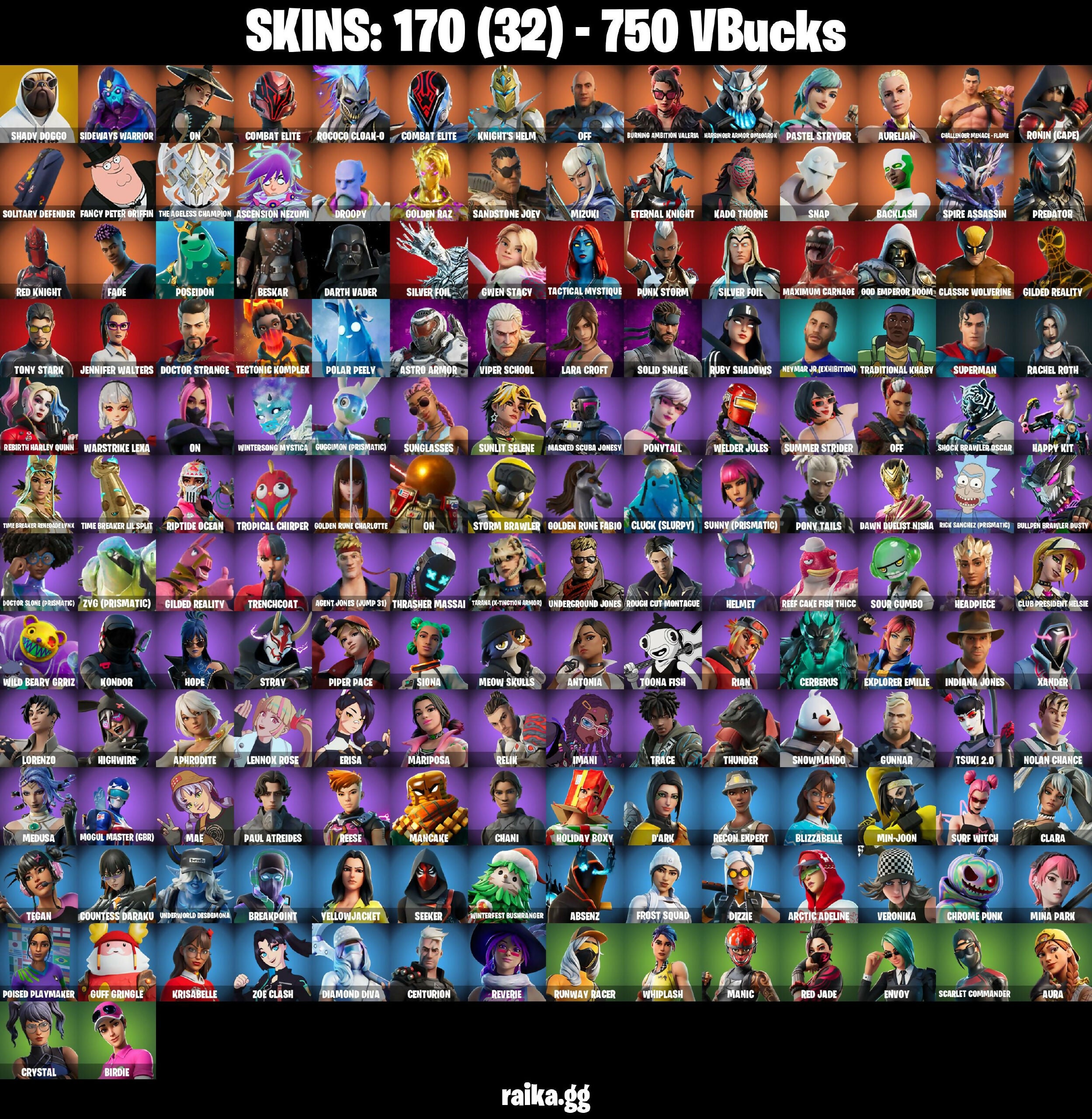 [PC/PSN/XB] 170 Stacked skins | Shady Doggo | Reaper | Laugh it up| Candy Axe | Lara Croft | Recon Expert | Yellow jacket | Kor| 750 VB