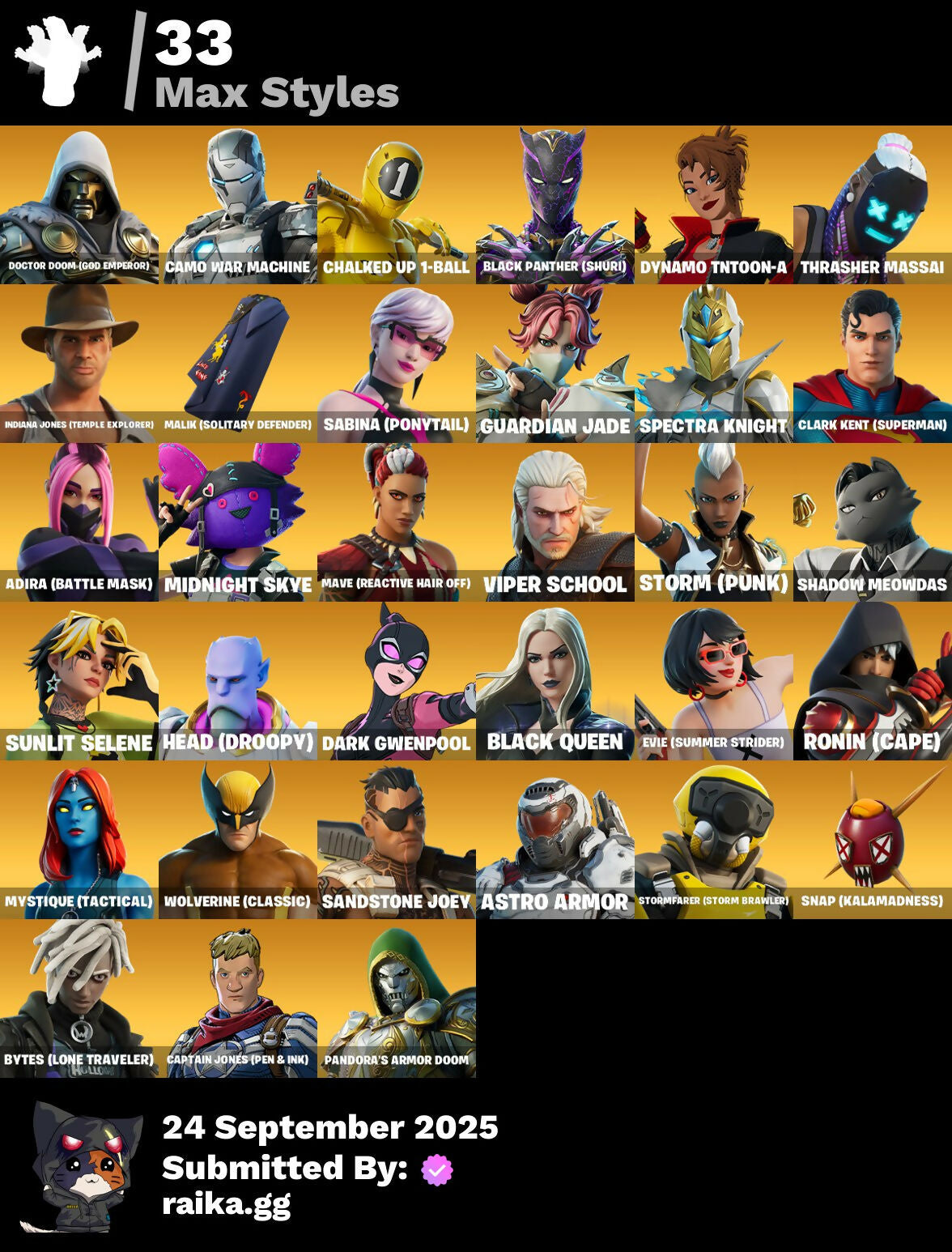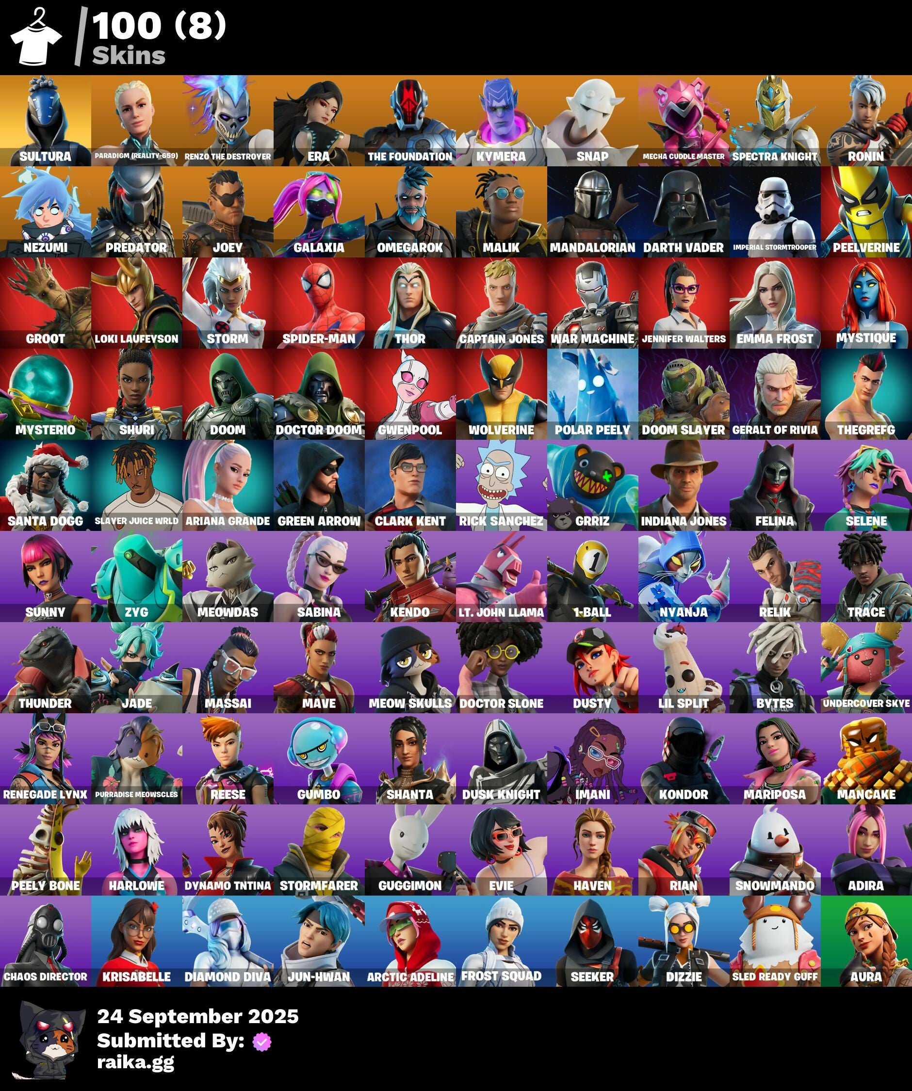 [PC/PSN/XBOX] 100 skins | Sultura | Paradigm (Reality-659) | Renzo the Destroyer | Era | The Foundation | Kymera | Snap | Mecha Cuddle Master | 1050 VB / FN