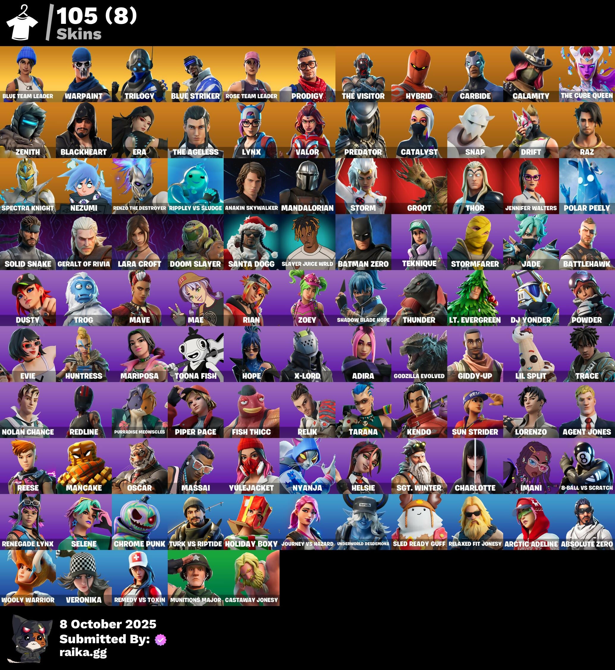 [PC/PSN/XBOX] 105 skins | OG STW | Blue Team Leader | Trilogy | Blue Striker | Prodigy | The Visitor | Hybrid | Carbide | Calamity | The Cube Queen | Zenith | 525 VB