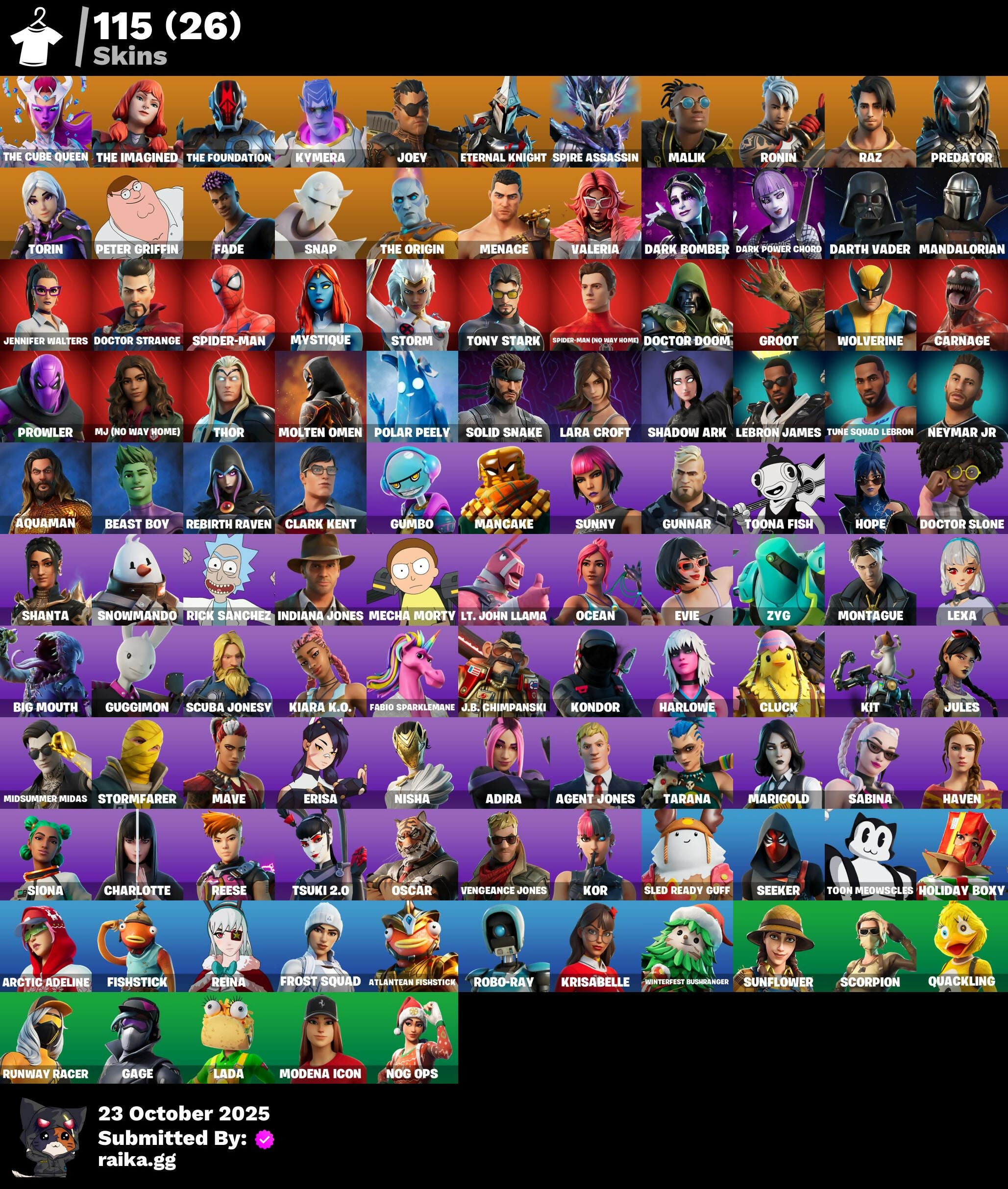 [PC/PSN/XBOX] 115 skins | Lara Croft | The Cube Queen | The Imagined | The Foundation | Kymera | Joey | Eternal Knight | Spire Assassin | Malik | Ronin | Raz | Predator | 300 VB / FN