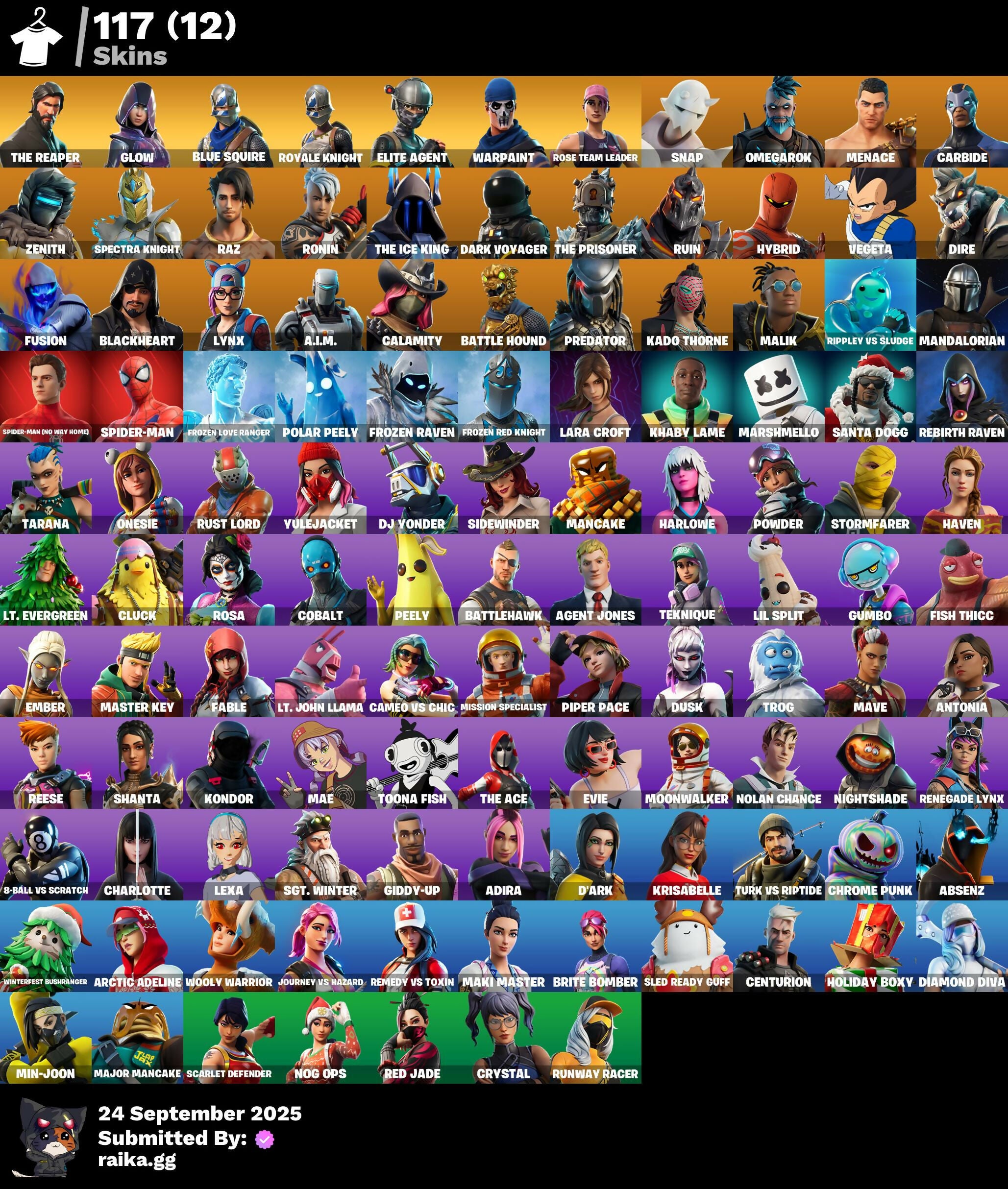 [PC/PSN/XBOX] 117 skins | OG STW | The Reaper | Glow | Blue Squire | Royale Knight | Elite Agent | Snap | Omegarok | Menace | Carbide | Zenith | Spectra Knight | 1125 VB / FN