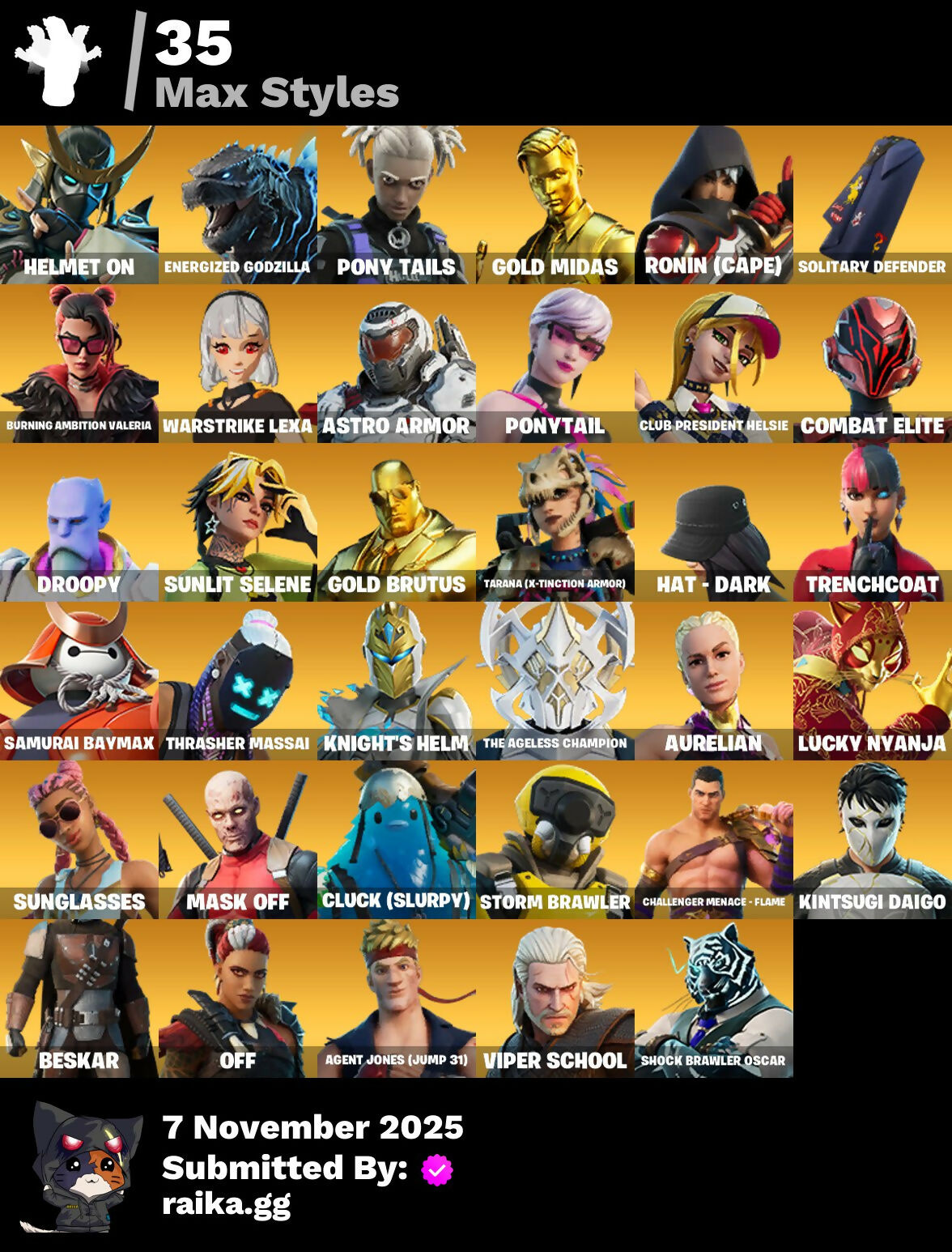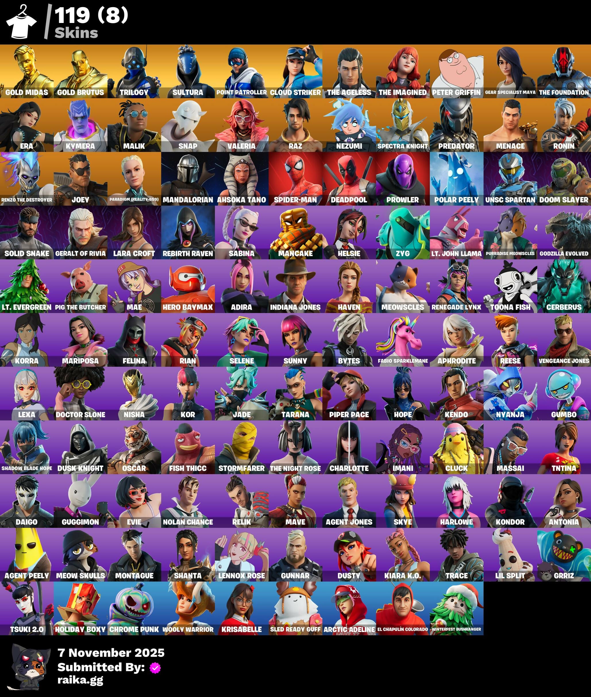 [PC/PSN/XBOX] 119 skins | Gold Midas | Gold Brutus | Trilogy | Sultura | Point Patroller | Cloud Striker | The Ageless | The Imagined | Peter Griffin | 0 VB / FN