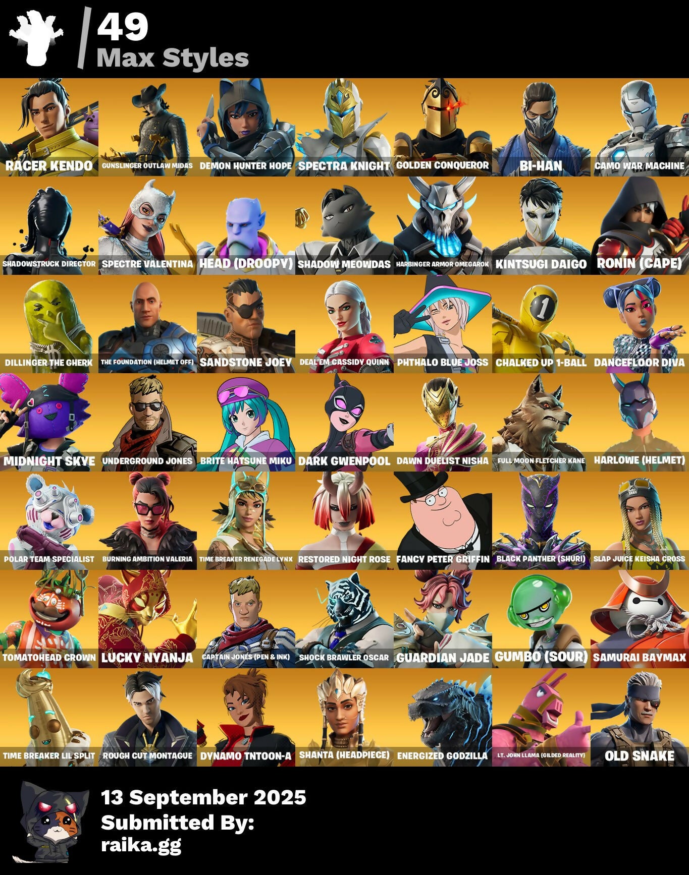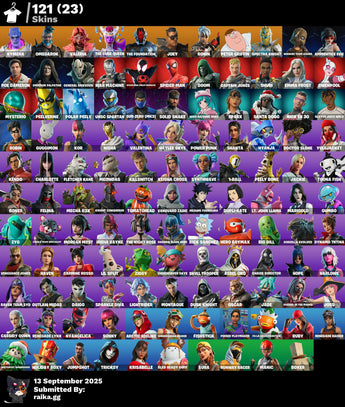 [PC/PSN/XBOX] 121 skins | Renegade Raider | Kymera | Omegarok | Valeria | The Cube Queen | The Foundation | Joey | Ronin | Peter Griffin | Spectra Knight | 300 VB / FN