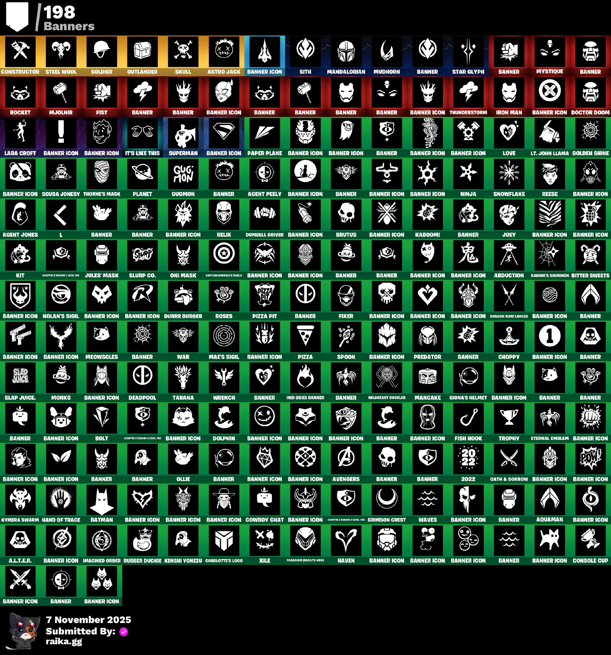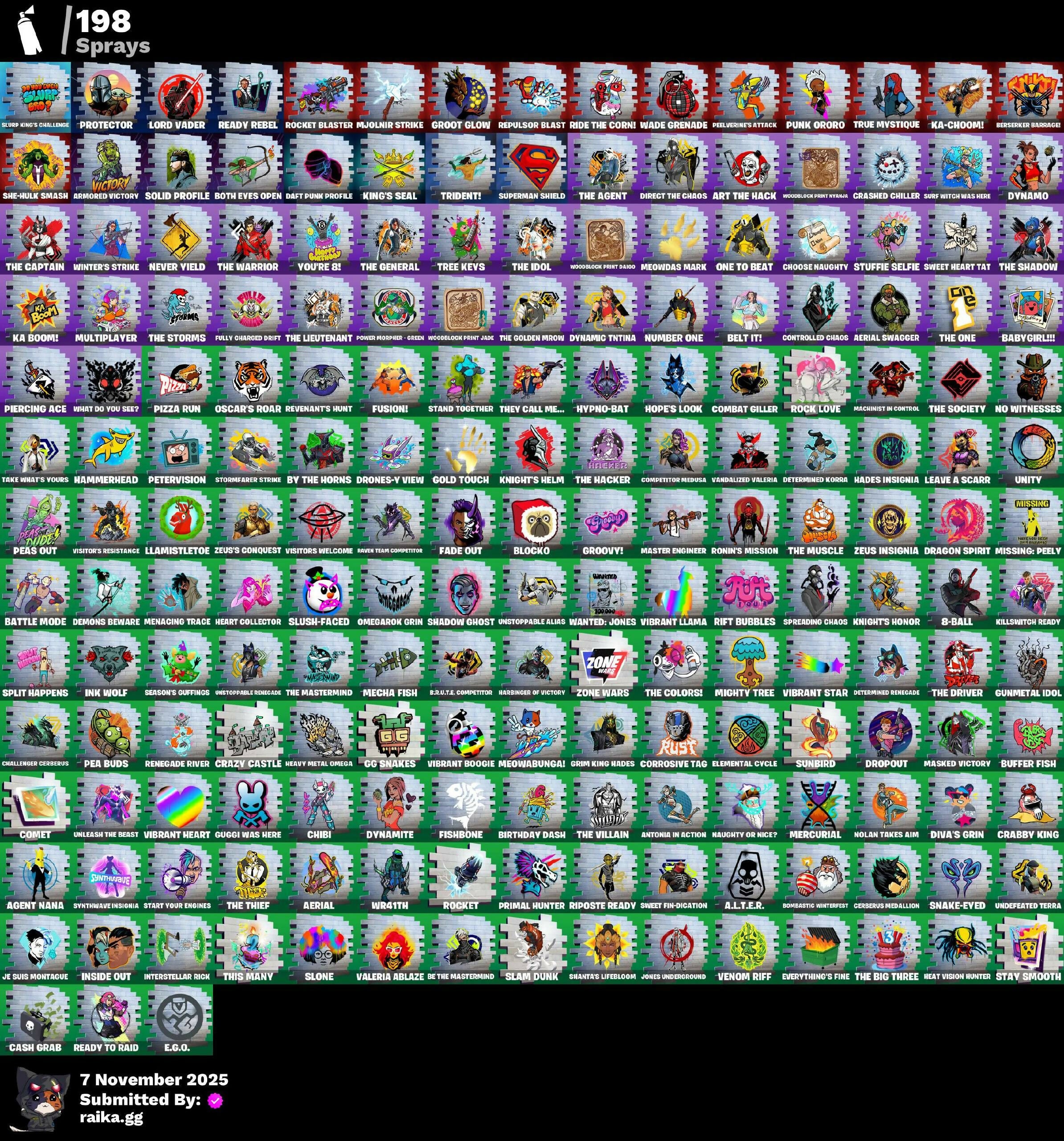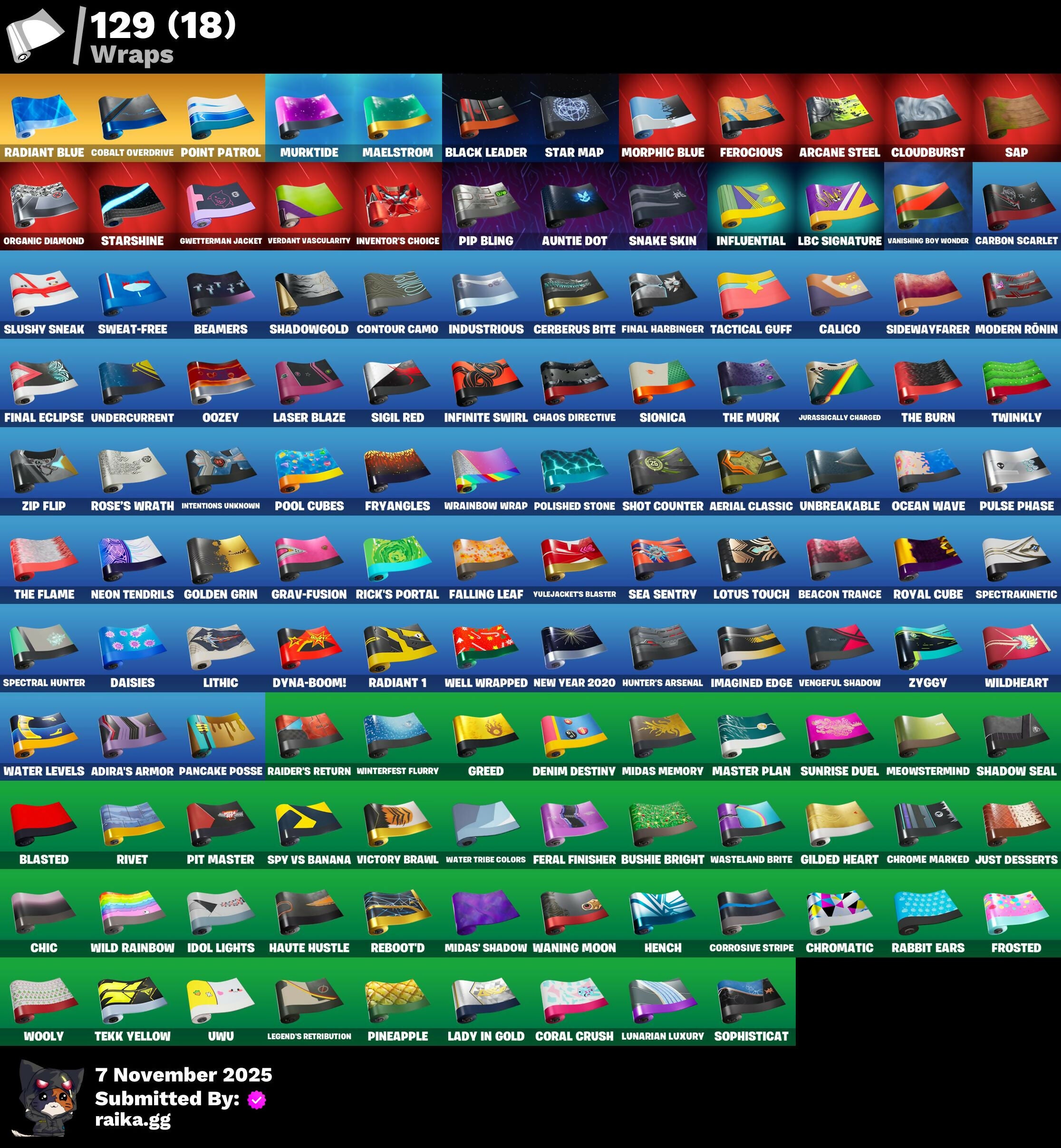 1-Ball, 2020 Kickflip, 2022, 4 Me???, 6-Carat Cutter, 8-Ball, 8-Ball Janky, 999 Knives, A.L.T.E.R., Abduction, Adira's Battle Flag, Adira’s Armor, Adventure Pack, Aerial, Aerial Classic, Aerial Swagger, Agent Jones, Agent Nana, Agent Peely, Ahsoka Tano, Ahsoka's Staff, Air Shredder, Alpha Trophy, Ancestral Bloom, Antonia, Antonia In Action, Aphrodite, Apocalypse Shroud, Aquaman, Aquaman's Trident, Arcane Energy Glider, Arcane Steel, Armored Victory, Arroyo Pack, Art The Hack, Arthur Curry, Assaultron Blade, Astro Jack, Astroworld Cyclone, Auntie Dot, Aura, Auto Clutch, Avengers, B Splat, B.R.U.T.E. Competitor, Babygirl!!, Back Board, Back-Mounted Bombs Away, Back-Mounted Turbo Tower, Backup Blades, Bamboo-Tana, Banana Bomber, Banana Briefcase, Bananaxe, Banner, Banner Icon, Base Jumper, Basecamp Bag, Basic Basher, Bat Royale, Batman, Battle Bloom, Battle Mode, Be The Mastermind, Beachcomber, Beacon Trance, Beamers, Bear Hug, Beastfang, Beatzbunny, Bedside Nanner, Beep Beep, Belt It!, Berserker Barrage, Big Haul, Bike To Go, Birthday Basher, Birthday Dash, Bitey, Bitter Sweets, Black Leader, Black One X-Wing, Blade Raven, Blade of the Waning Moon, Blasted, Blitz 'Brella, Blitz Axe, Blitz Wings, Blocko, Bloomin' Bouquet, Blue Viper, Bobo, Bolt, Bomb Bouquet, Bombastic Winterfest, Bombs Away!, Bone Patrol, Boogie Down, Boomin', Both Eyes Open, Boulder Breakers, Bounty 'Brella, Brain Freeze, Breakfast Bounty, Breakshore Trident, Breathless Blades, Brella, Brite Raider, Bronzed Scimitars, Brutus, Buffer Fish, Bullet Rider, Bunnymoon, Burning Ambition Valeria, Bushie Bright, Butcher's Knife, Butcher's Tools, Butter Robot, By The Horns, Calico, Call Me, Captain America's Shield, Carbon Commando, Carbon Fiber Holster, Carbon Pack, Carbon Scarlet, Card Drop, Cardistry, Cash Grab, Cauldron Chill, Cerberus, Cerberus Bite, Cerberus Medallion, Chainsaur, Chalked Up 1-Ball, Challenger Cerberus, Challenger's Staff, Champion Kyra, Chaos Directive, Chaos Director, Chaos Explorer, Chaotic Crawler, Charge Pack, Charlotte, Charlotte's Logo, Chibi, Chic, Choice Knit, Choose Naughty, Chop Chop, Chop Dropper, Choppy, Chromatic, Chrome Cloudcruiser, Chrome Marked, Clang & Basher, Classic Wolverine, Classified, Clawbox, Clawz Retro, Clean Sweep, Cliffside Soarer, Cloud Striker, Cloudburst, Clutch & Dagger, Coaxial Blue, Cobalt Overdrive, Codsworth's Cleanup, Coin Flip, Collector Kado Thorne, Combat Cue, Combat Giller, Comet, Comet Crasher, Competitor Medusa, Competitor's Time Brella, Conch Call, Console Cup, Constructor, Contour Camo, Controlled Chaos, Convergence, Coral Crush, Corrosive Stripe, Corrosive Tag, Cowboy Chat, Cozy Conch, Crabby King, Crack It, Crashed Chiller, Crazy Castle, Crescent Shroom, Crimson Crest, Crimson Polestar, Crimson Wish, Crowning Achievement, Cryptic Coaster, Cryptic Sling-Kit, Crystal Smasher, Cuddly Cloudcruiser, Cursed Marionette, Cymlar, Daft Punk Profile, Daisies, Dawn Duelist Nisha, De-Rezz De-Stroyer, Deadpool, Deadpool's Katanas, Dealer's Deck, Deck Ducky, Deep Dab, Deep Dive, Demons Beware, Demonslayer Blade, Denim Destiny, Determined Korra, Determined Renegade, Diamond Diva, Diamond Throne, Diamondclaw Picker, Dice Roll, Dieselback Pack, Direct The Chaos, Diva’s Grin, Dive Knives, Do The I'Split, Doctor Doom, Doctor Slone, Dogg Treat, Dolphin, Doom Chalice, Doom's Cowl, Double-Barreled Boom Ballasts, Downpour, Doze Dab, Dragon Radar, Dragon Rune Lances, Dragon Spirit, Dreamer's Two-Shot, Drome Drifter, Dromerunner's Trophy, Drones-V View, Droopy, Dropout, Duelist's Foil, Dumbbell Driver, Dumbell Driver, Durrr Burger, Dusk Knight, Dyna-Boom!, Dynamic Tintina, Dynamite, Dynamo, Dynamo Grav-Suit, Dynamo Tntina, Dynamo Tntoon-A, E.G.O., Eagle's Form, Eclipse Brella, Eclipsed Edges, Electric Shredder, Electro Pairing Blades, Electro-Pincers, Elegance Blade, Elemental Cycle, Elevation, Elite Servo, Ember Pick, Enchanted Lifebloom, Eon Blades, Epic Blade of Floof, Epic Swords of Wonder, Eternal Emblem, Eternal Knight, Eternal Ranker, Eternal Shield, Evasive Maneuvers, Everything’s Fine, Expert's Bonebag, FNCS Fighter, Fade, Fade Out, Falling Leaf, Fancy Peter Griffin, Fangs of Hesk, Fashion Accident Janky, Fearless Fangs, Felina, Felina's Claw, Feline Dagger, Feline Fun, Feral Finisher, Ferocious, Field Flyer, Fiendish Wand, Final Eclipse, Final Harbinger, Fire Show, Fish Hook, Fish Thicc, Fishbone, Fishstick Janky, Fishy Flier, Fist, Fist Bump, Fixer, Flaky Feast, Flapjack Flyer, Flashback Breakdown, Flight Risk, Flippin' Away, Flux Silvera, Foil Flex, Fortilla Flier, Foundational 'Brella, Founder's Glider, Founder's Umbrella, Fox Drifter, Frequency Flyer, Frostburn, Frosted, Frosted Frets, Frosty Globes, Fryangles, Fuel Rod and Tongs, Fully Charged Drift, Fusion!, GG Snakes, Galactic Pack, Gathering Storm, Gear Specialist Maya, Get Griddy, Get Schwifty, Gilded Heart, Gilded Morphic Blades, Gilded Pinscher, Gilded Scepter, Gingerbread Raider, Glorious Giftblade, Godzilla's Exo-Spine, Gold Brutus, Gold Dagger Pack, Gold Midas, Gold Touch, Golden Daggers, Golden Gambit, Golden Grin, Golden King, Golden Nemesis, Golden Scythe, Golden Shine, Good Guy, Good Sportsmanship, Gorgon's Aegis, Grand Glacier Glider, Grav-Fusion, Greed, Grim King Hades, Grizzly Keys, Groot, Groot Glow, Groot's Sap Axes, Groovy!, Ground Pound, Gucci Was Here, Guffy 6-String, Guggimon, Gugmon, Gunmetal Idol, Gwenpool's Katanas, Gwetterman Jacket, Hack & Smash, Hadean Gate, Hades Insignia, Hammerhead, Hammerhead Morty, Hammers of Justice, Hand of Lightning, Hand of Trace, Hand-Forged, Harbinger Armor Omegark, Harbinger Of Victory, Harley Hitter, Haute Hustle, Have A Seat, Haven, Heart Collector, Heart's Carver, Heart's Rest, Heartburst, Heartwinder, Heat Vision Hunter, Heavy Metal Omega, Hello Friend, Hench, Hench Hauler, Heron Stance Hero, High Society Glider, Holiday Boxy, Holly Hatchets, Holo-Boot Pack, Hooplah Hammer, Hope, Hope Star, Hope’s Look, Horde's War Wheel, Hot Pokers, Humbug Slicer, Hunter