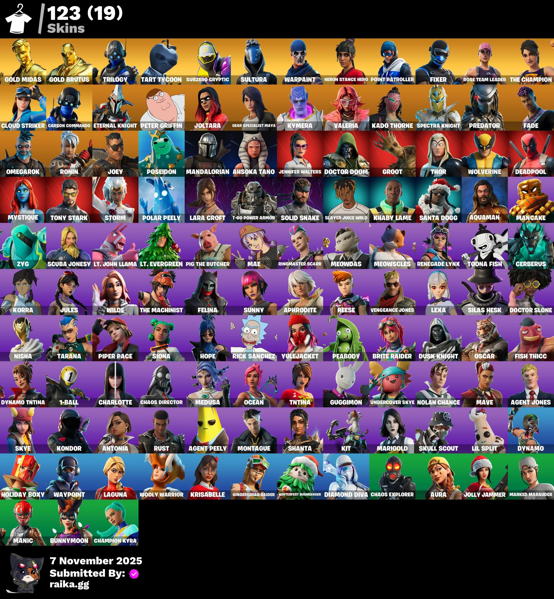 [PC/PSN/XBOX] 123 skins | OG STW | Lara Croft | Gold Midas | Gold Brutus | Trilogy | Tart Tycoon | Subzero Cryptic | Sultura | Heron Stance Hero | Point Patroller | 800 VB / FN