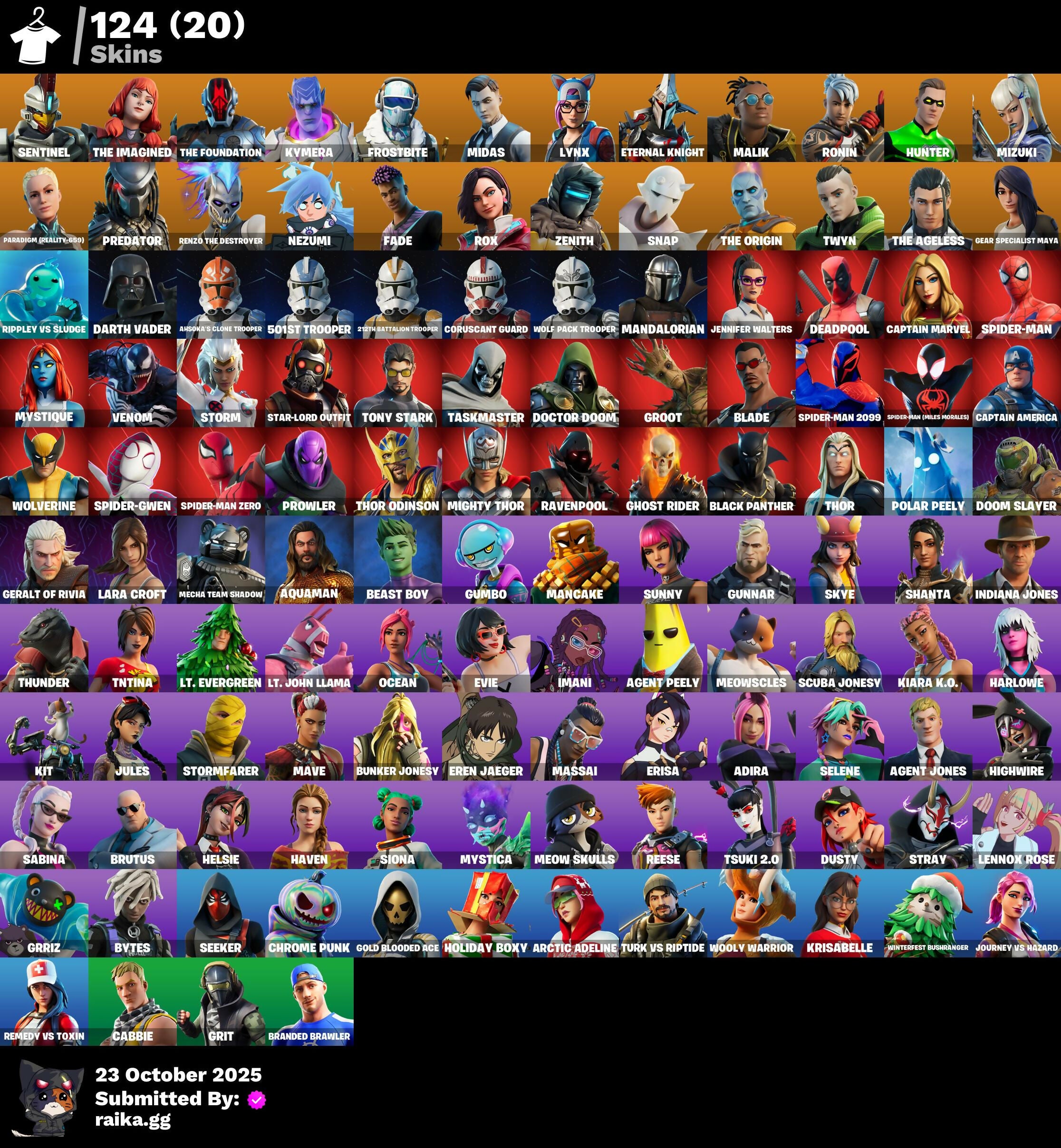 [PC/PSN/XBOX] 124 skins | Lara Croft | Sentinel | The Imagined | The Foundation | Kymera | Frostbite | Midas | Lynx | Eternal Knight | Malik | Ronin | Hunter | / FN