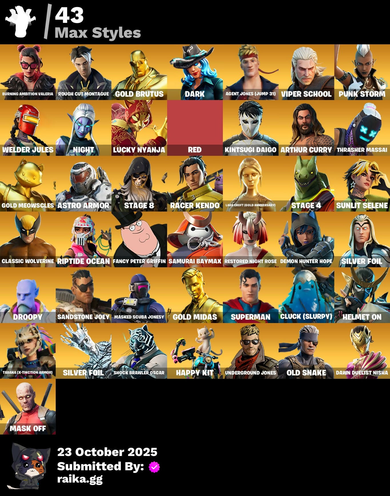 [PC/PSN/XBOX] 126 skins | Candy Axe | Renegade Raider | Gold Brutus | Gold Meowscles | Gold Midas | Prodigy | Fixer | Vivi Chroma | Sultura | Lina Scorch | 450 VB / FN