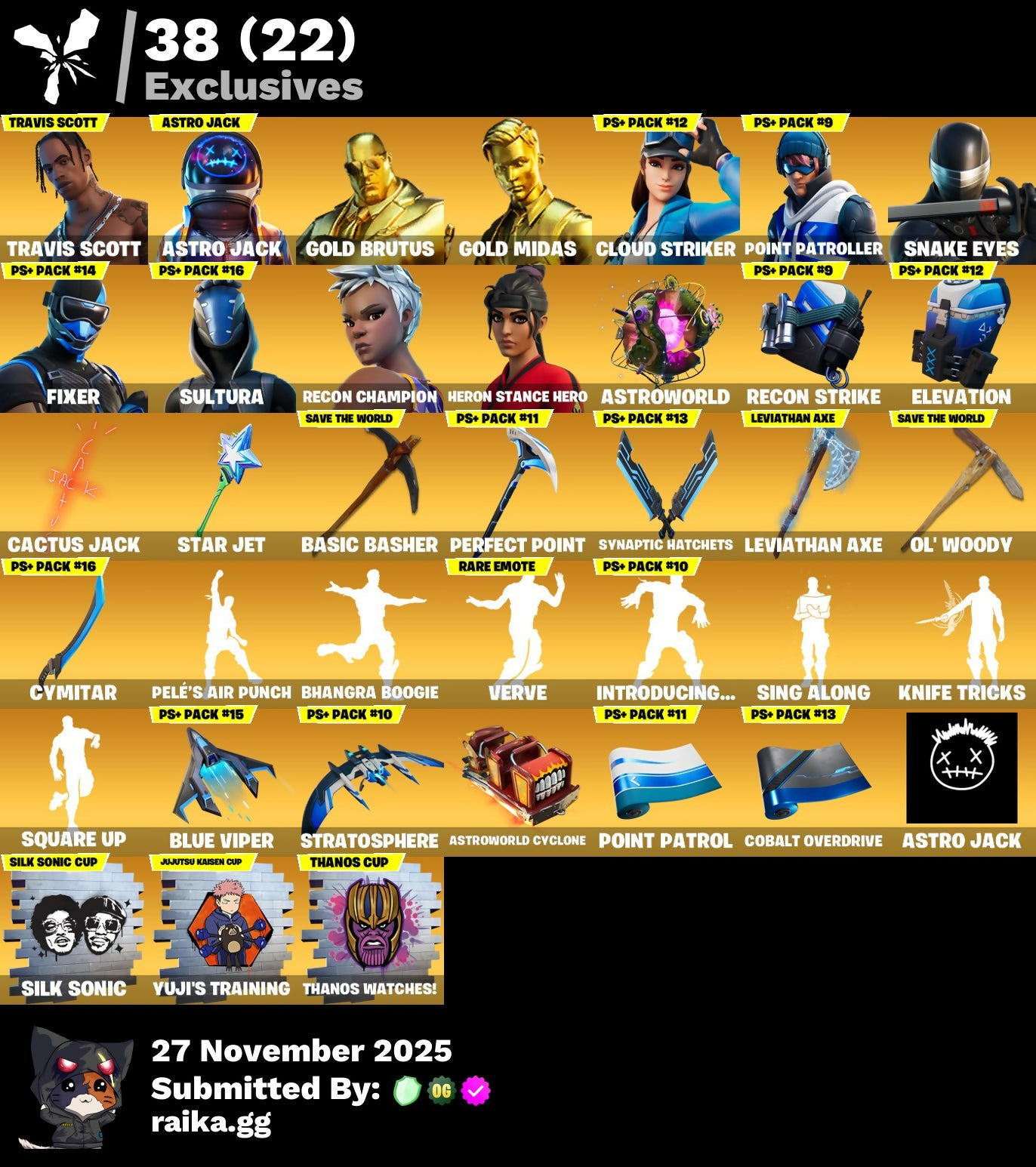 [PC/PSN/XBOX] 126 skins | Travis Scott | Astro Jack | Leviathan Axe | Gold Brutus | Gold Midas | Cloud Striker | Point Patroller | Snake Eyes | Fixer | Sultura | 500 VB #602