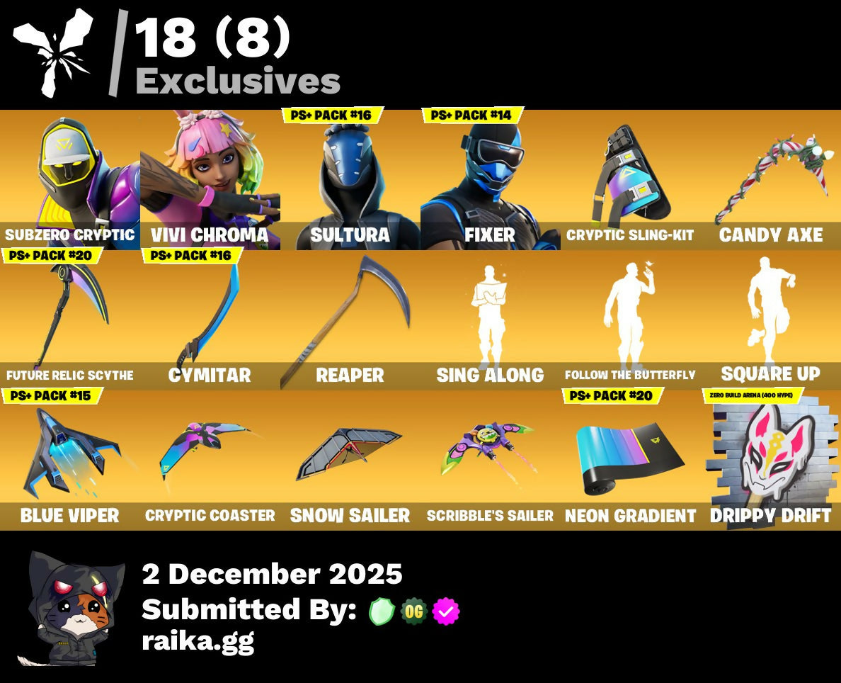 [PC/PSN/XBOX] 130 skins | Subzero Cryptic | Vivi Chroma | Sultura | Fixer | Ronin (Cape) | Burning Ambition Valeria | Collector Kado Thorne | 300 VB #a72