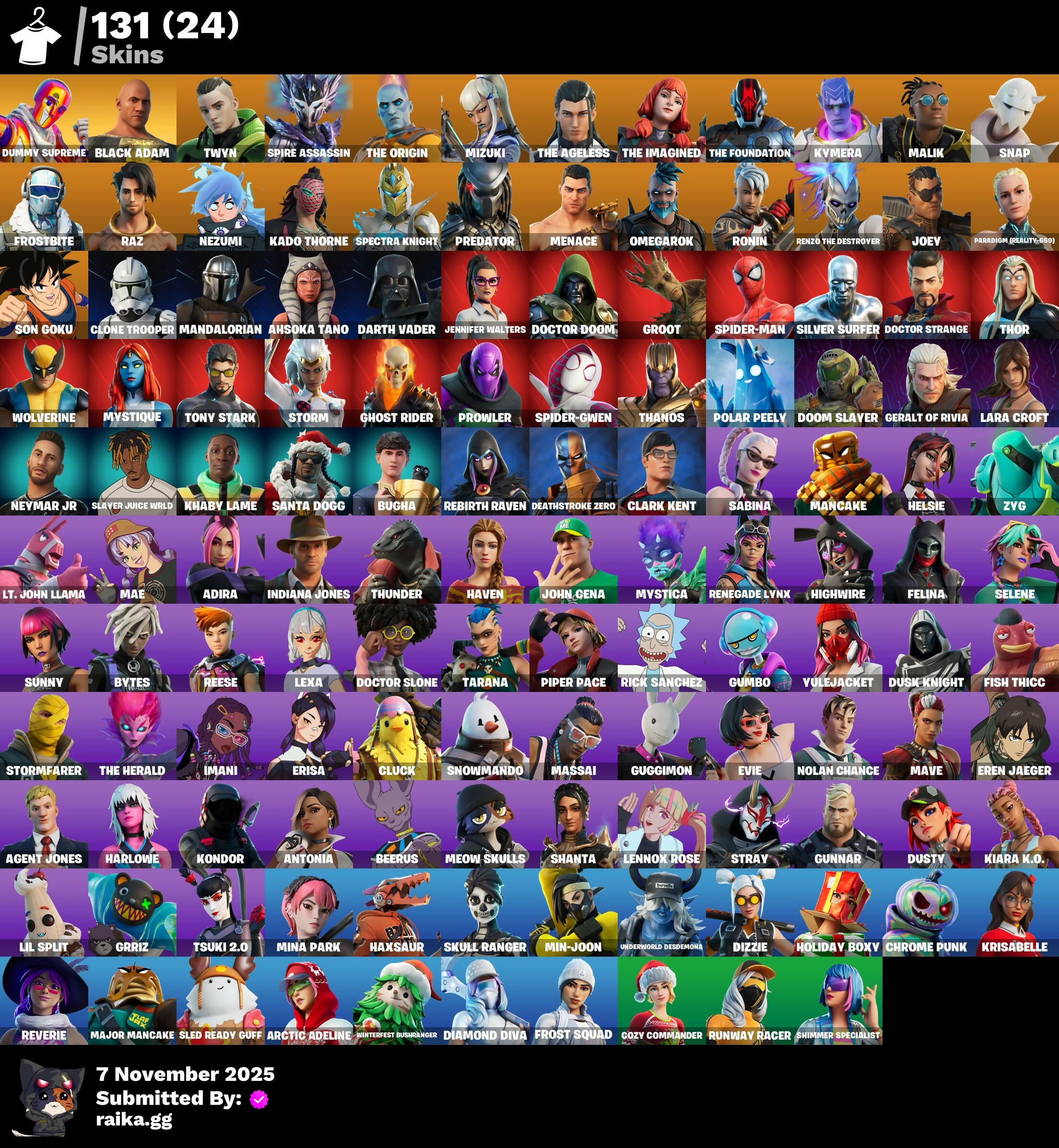 [PC/PSN/XBOX] 131 skins | Lara Croft | Dummy Supreme | Black Adam | Twyn | Spire Assassin | The Origin | Mizuki | The Ageless | The Imagined | The Foundation | 450 VB / FN