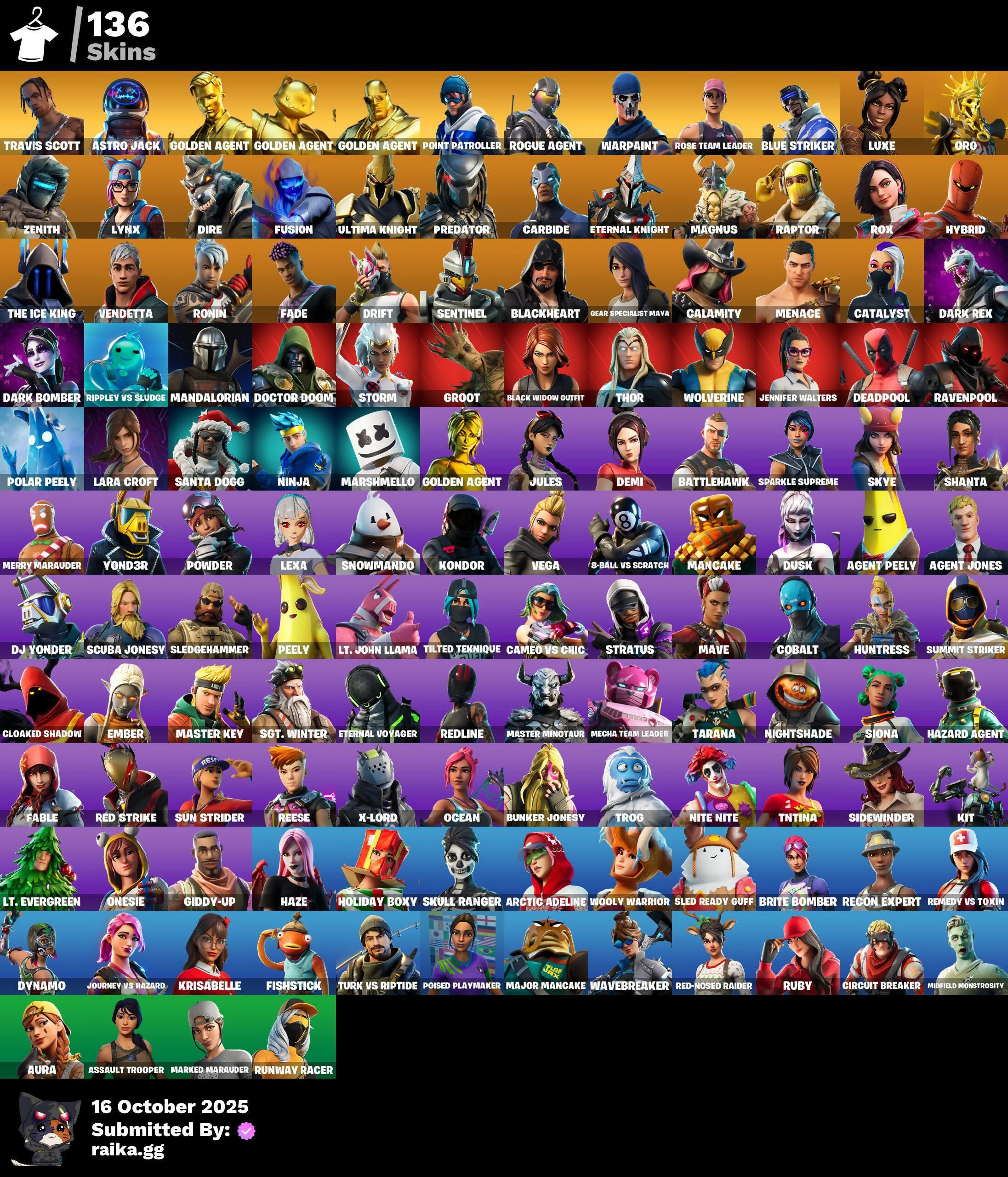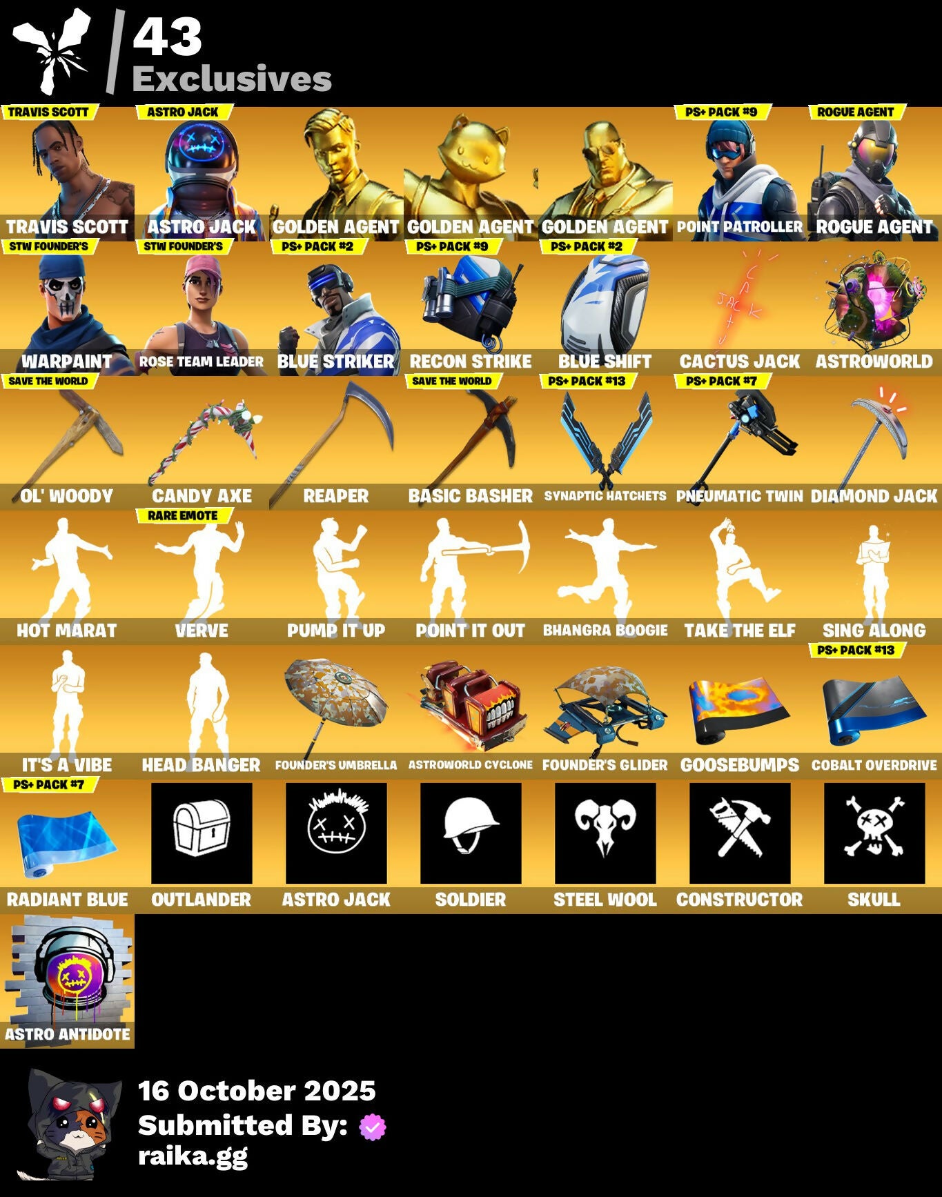 [PC/PSN/XBOX] 136 skins | OG STW | Travis Scott | Candy Axe | Astro Jack | GOLDEN AGENT | GOLDEN AGENT | GOLDEN AGENT | Point Patroller | Rogue Agent | Blue Striker / FN