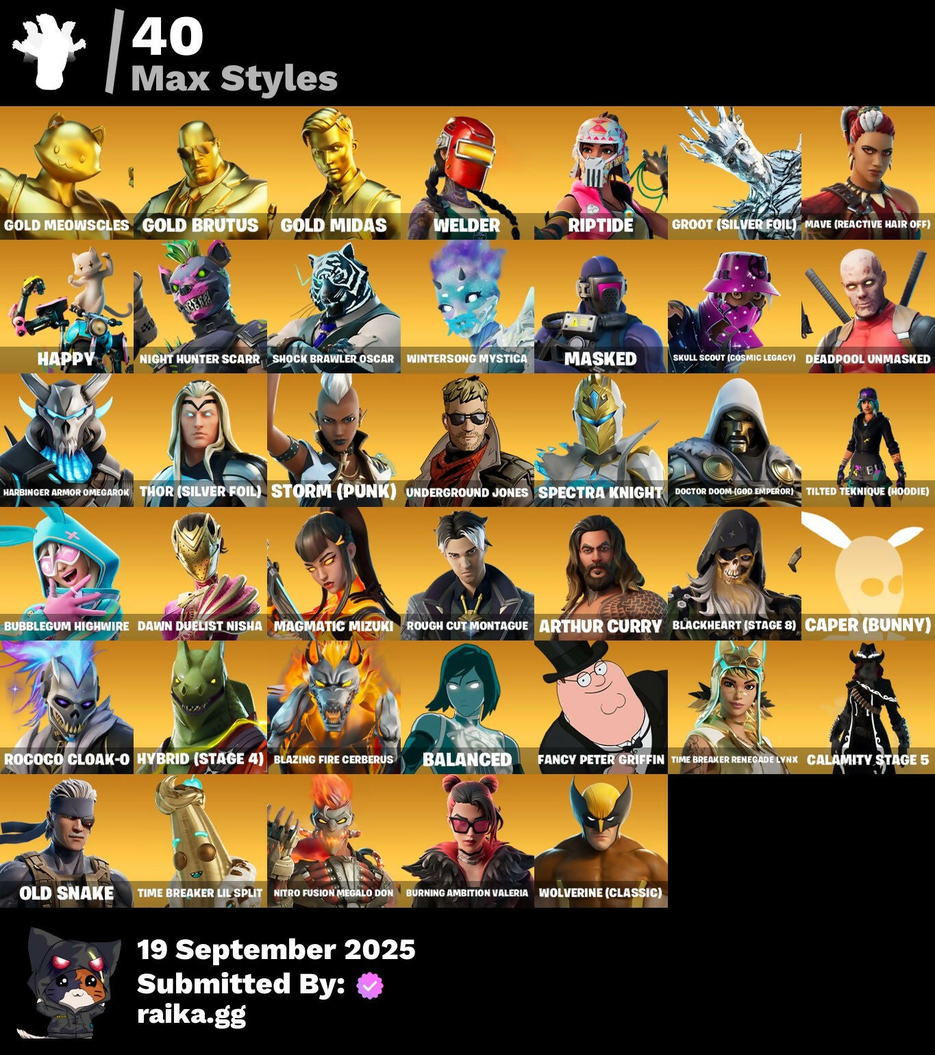 [PC/PSN/XBOX] 141 skins | OG STW | Gold Meowscles | Gold Brutus | Gold Midas | Vivi Chroma | Tart Tycoon | Fade | Omegarok | Peter Griffin | Catalyst | 280 VB / Fortnite