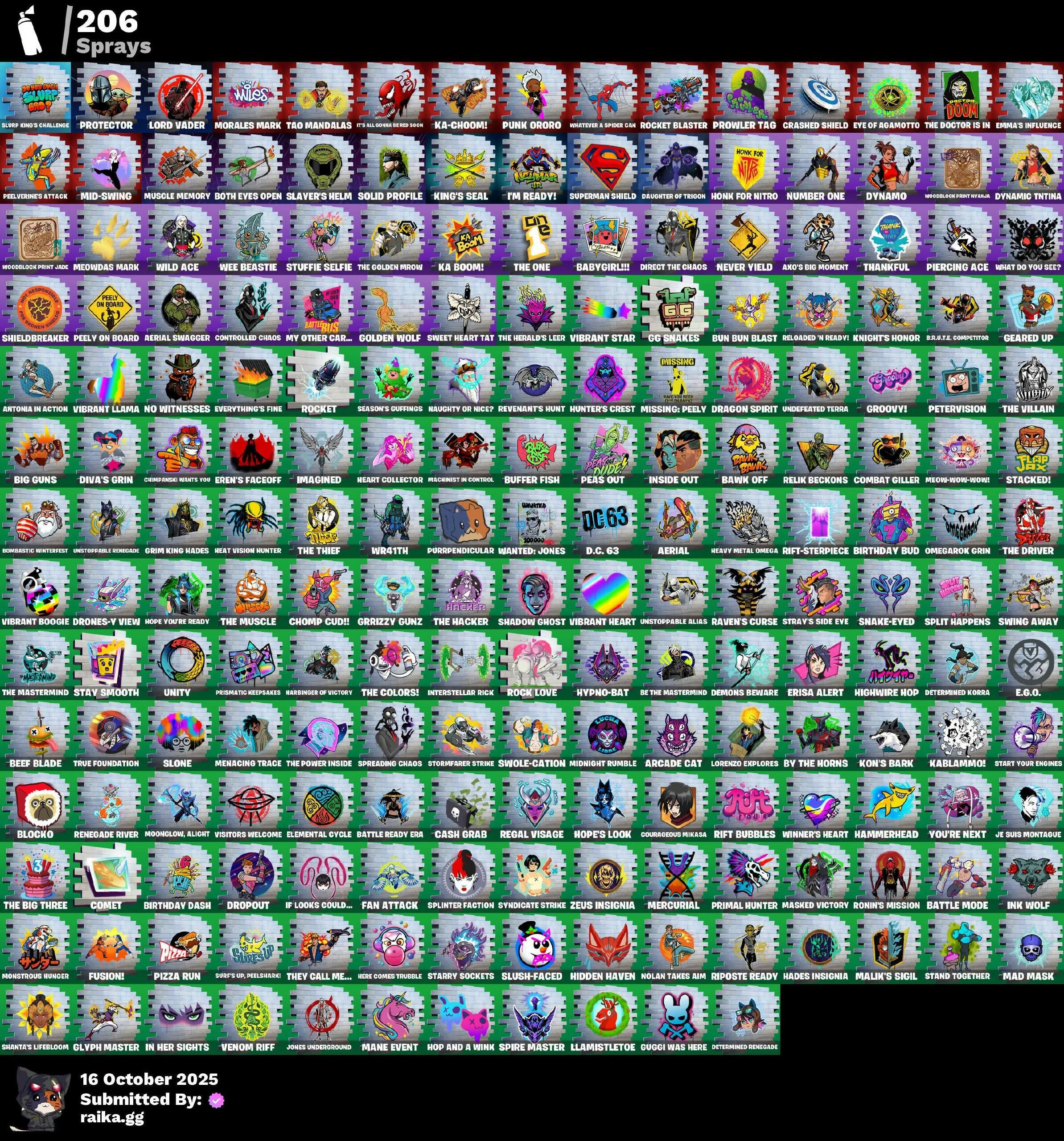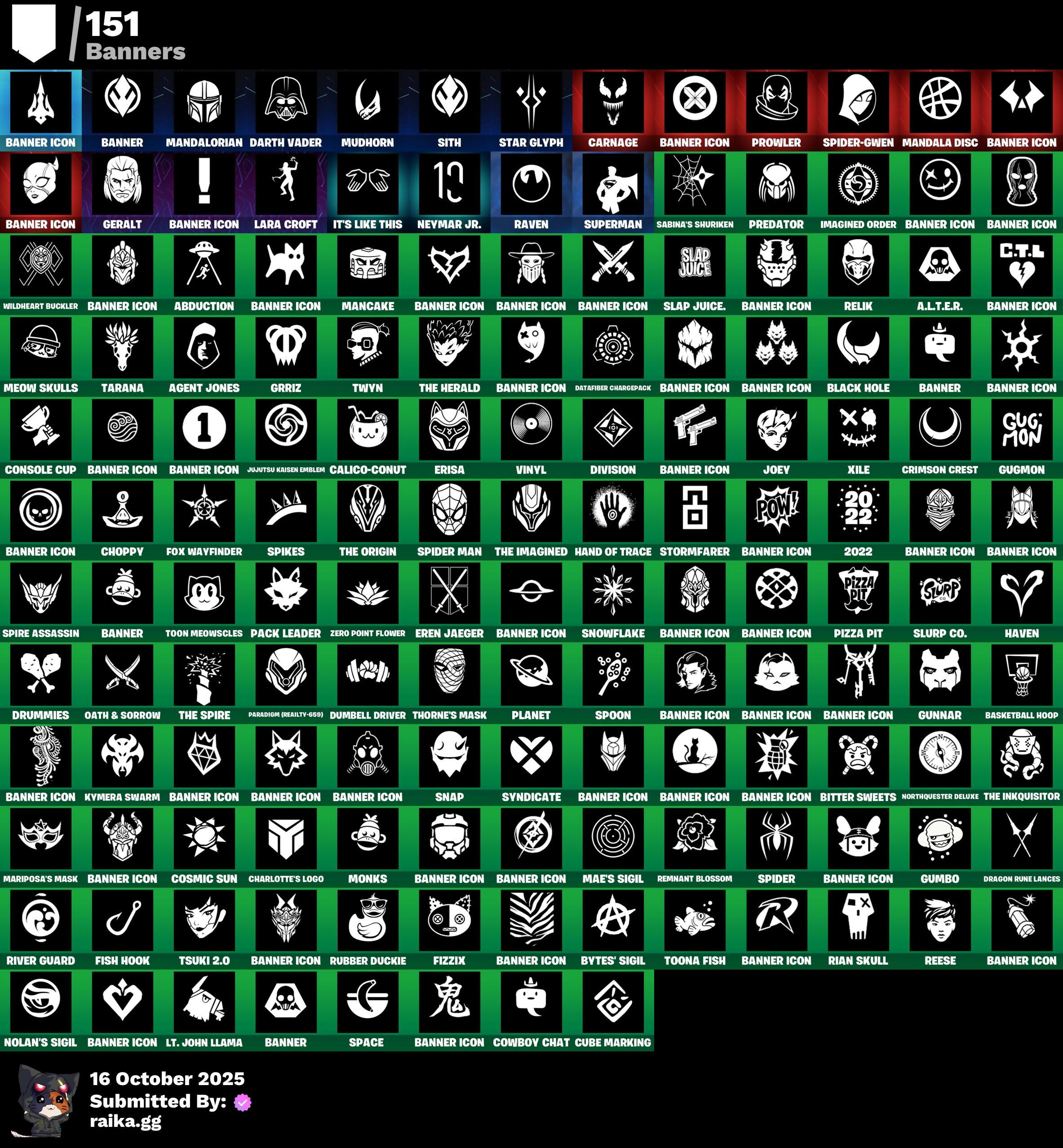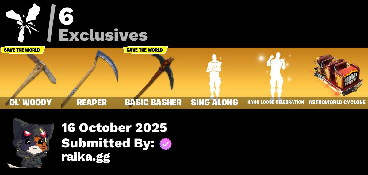 1-Ball, 2.O's Revenge, 2020 Kickflip, 4 Me???, 8-Ball Janky, 999 Knives, A.L.T.E.R., Abduction, Absenz, Abyssal Blade, Acolyte's Curse, Adira, Adira's Armor, Adira's Battle Flag, Adventure Aerial, Aerial, Aerial Acrobat, Aerial Classic, Aerial Swagger, Aftermath, Agent Jones, Agent Jones (Jump 31), Ahsoka Tano, Ahsoka's Staff, All-Nighter, Alpha Trophy, Ancestral Bloom, Antonia, Antonia In Action, Aphrodite, Apocalypse Shroud, Arachnrobatics, Arcade Cat, Arctic Adeline, Arroyo Pack, Articulated Blade Wing, Astro Armor, Astroworld Cyclone, Auntie Dot, Aurelian, Auto Clutch, Avatar's Flourish, Axe-Tral Form, Axo's Big Moment, Azarath Metrion Zinthos!, B.R.U.T.E. Competitor, Babygirl!!!, Back-Mounted Bombs Away, Backup Blades, Balance Board, Bananaxe, Baron's Hoard, Base Jumper, Basecamp Bag, Basement Key, Basic Basher, Basketball Hoop, Bat Royale, Battle Bloom, Battle Mode, Battle Ready Era, Bawk Off, Be The Mastermind, Beach Breezer, Beachcomber, Beacon Glass, Beamers, Bean Bag, Beastfang, Beatzbunny, Bedside Nanner, Beef Blade, Beep Beep, Big Guns, Birthday Basher, Birthday Bud, Birthday Dash, Bitev, Bitter Sweets, Black Hole, Blade Of The Waning Moon, Bladed Travpak, Blasted, Blitz 'Brella, Blitz Axe, Blocko, Blowin' Up, Blustery Bag, Board Breaker, Bobo, Bomb Bouquet, Bombastic Winterfest, Bone Patrol, Boogie Down, Book of Cagliostro, Boomin', Boots 'N' Cats, Both Eyes Open, Boulder Breakers, Bounty 'Brella, Brain Freeze, Breakfast Bounty, Breaking Waves, Breakshore Trident, Breezy, Brilliant Cutters, Brite Bomber, Bronzed Scimitars, Brush Your Shoulders, Bubbloon, Buffer Fish, Bullet Rider, Bun Bun Bang Bang, Bun Bun Blast, Bunsen Backburner, Bushie Bright, Butter Robot, Buttoned Up, Buzz Pack, Buzzsaw Breacher, By The Horns, Bytes, Bytes' Sigil, Cacodemon, Cake Clobberer, Calico Holiday, Calico-Coconut, Call Me, Cap K.O., Captain Jones's Shield & Panneal, Captain Llamerica, Carbon Fiber Holster, Carbon Scarlet, Cardistry, Carnage, Carnage Cleaver, Cash Grab, Cauldron Chill, Cazadora, Cazadora Wings, Celebratory Slice, Cerberus, Cerberus Bite, Chain Surfer, Chainsaur, Chalked Up 1-Ball, Chaos Directive, Chaos Director, Chaotic Crawler, Charge Pack, Charlotte, Charlotte's Logo, Chefs Special, Chemist's Cloudglider, Chimpanski Wants You, Choice Knit, Chomp Cudi!, Chop Chop, Chop Dropper, Choppy, Chrome Cloudcruiser, Chrome Marked, Chrome Punk, Chromebrella, Chromeseed, Chromestruck Fire, Chronos Lock, Clang & Basher, Clark Kent, Classic Age, Classified, Clawbox, Clawz Retro, Clean Sweep, Cliffside Soarer, Clinical Crosser, Cloud Llama Board, Cloudburst, Cluck, Cluck (Slurpy), Clucking Mad, Clutch & Dagger, Cold Furia, Collector Kado Thorne, Combat Cue, Combat Elite, Combat Giller, Comet, Comfy Cats, Competitor's Time Brella, Conch Call, Confetti, Conjure Weapon, Console Cup, Contour Camo, Controlled Chaos, Controller Crew, Coral Crush, Corrosive Stripe, Cosmic Sun, Count It!, Courageous Mikasa, Cowboy Chat, Cozy Conch, Crack It, Crashed Shield, Crescent Shroom, Crimson Crest, Crimson Polestar, Crimson Wish, Crowning Achievement, Crucible Blade, Crystal Axe Of The Masters, Cube Aether, Cube Marking, Cubed, Cubic Scepter, Cubic Vortex, Cuddle Carvers, Cuddle Mech, Cuddly Cloudcruiser, Curling Iron, Cyclo Curl, D.C. 63, Dagger Dance, Daisies, Dark Charger, Dark Side, Dark Symbiote, Darth Vader, Datafiber Chargepack, Daughter Of Trigon, Dealer's Deck, Deck Ducky, Deep Dive, Deep Future, Deimos, Delivery Diver, Demon Wind Shuriken, Demons Beware, Demonslayer Blade, Denim Destiny, Designated Hitters, Destroyer Signature, Determined Korra, Determined Renegade, Diamond Throne, Diamondclaw Picker, Dice Roll, Dimensional Camo, Dimensional Gate, Dino Deck, Direct The Chaos, Dirtbike Challenge, Diva's Grin, Division, Do The Split, Doctor Slone, Doctor Strange, Dogg Treat, Doom Brella, Doom Slayer, Doomed Echo, Double Header, Double-Barreled Boom Ballasts, Doze Dab, Dragon Radar, Dragon Rider, Dragon Rune Lance, Dragon Rune Lances, Dragon Spirit, Dramatic Flares, Dreamer's Two-Shot, Driver, Drome Drifter, Dromrunner's Trophy, Drones-V View, Droopy, Dropout, Drummies, Duelist's Foil, Duelist's Grace, Dumbbell Driver, Dumbell Driver, Dune Scooper, Dusk Knight, Dusty, Dyna-Boom!, Dynamic Tintina, Dynamo, Dynamo Grav-Suit, Dynamo Tntina, Dynamo Tntoon-A, E.G.O., Eagle's Form, Eclipse Brella, Eclipsed Edges, Eggar, Electric Shredder, Elegance Blade, Elemental Cycle, Elite Servo, Emma's Influence, Empress Fan Dance, Enchanted Lifebloom, Endless Scroll, Energy Claw, Epic Blade Of Floof, Era, Eren Jaeger, Eren's Faceoff, Erisa, Erisa Alert, Erisa's Crest, Eternal Ranker, Evasive Maneuvers, Everything's End, Everything's Fine, Evie, Expressionism, Eye Of Agamotto, Fa-La-La-Llama, Fabio Sparklemane, Fading Ember Cloak, Fan Attack, Fashion Accident Janky, Felina, Felina's Claw, Feline Dagger, Fiendish Wand, Fiery Flow, Fiery Jam, Final Eclipse, Final Harbinger, Fire Mint, Fish Hook, Fish Thicc, Fishbone Flayer, Fishstick Janky, Fizzix, Flaky Feast, Flapjack Flyer, Flashback Breakdown, Flatline, Flavor-Dusted Sprinklerlings, Flight Risk, Flip Flyer, Flippin' Away, Flood, Flux Silvera, Foil Flex, Fortilla Flier, Foundation's Mantle, Foundation's Plasma Spike, Foundational, Foundational 'Brella, Fox Wayfinder, Foxfire Edge, Fresh Aura, Freshbreaker, Frostburn, Frosted Frets, Frosty Globes, Frozen Oculura, Frozen Over, Fryangles, Fusion!, GG Snakes, Galactic Pack, Geared Up, Geralt, Geralt Of Rivia, Get Out Of Your Mind, Gila Classic, Gilded Heart, Glitter N' Grim, Glorious Gitblade, Glyph Master, Go Mufasa, Golden Grin, Golden Nemesis, Golden Scythe, Golden Wolf, Gorgon's Aegis, Grand Glacier Glider, Grav-Fusion, Greed, Griffin's Talon, Grim King Hades, Grind Bag, Gringle Gift, Groot's Sap Axes, Groovy!, Grriz, Grrizzy Gooper, Grrizzy Gunz, Grzzly Keys, Guardian Daggers, Guff Gringle, Guffy 6-String, Guffy G-String, Guggi Was Here, Guggimon, Gugmon, Gum Brawler, Gumbo, Gummy Sack, Gunn-Brella, Gunnar, Gunnar's Sp