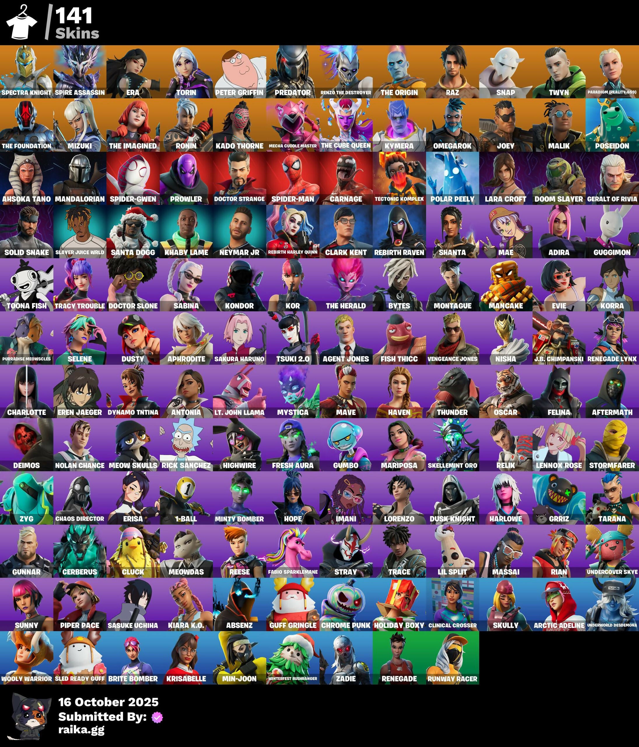 [PC/PSN/XBOX] 141 skins | Spectra Knight | Spire Assassin | Era | Torin | Peter Griffin | Predator | Renzo the Destroyer | The Origin | Raz | Snap | Twyn | 1350 VB / FN