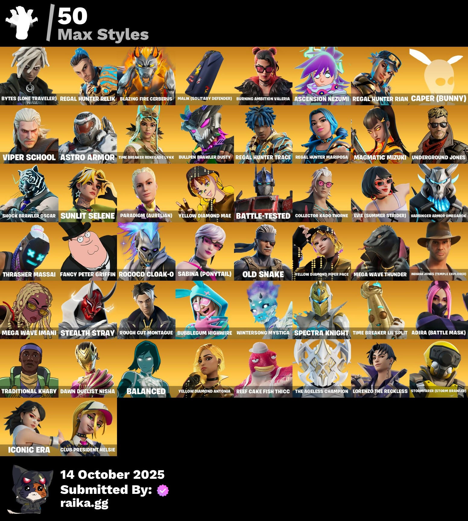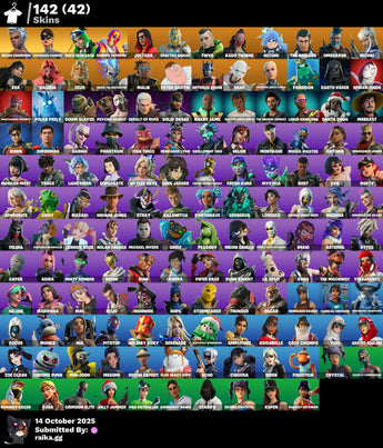 [PC/PSN/XBOX] 142 skins | Renegade Raider | Recon Champion | Unchained Ramirez | FNCS Renegade | Dummy Supreme | Joltara | Spectra Knight | Twyn | 400 VB / FN
