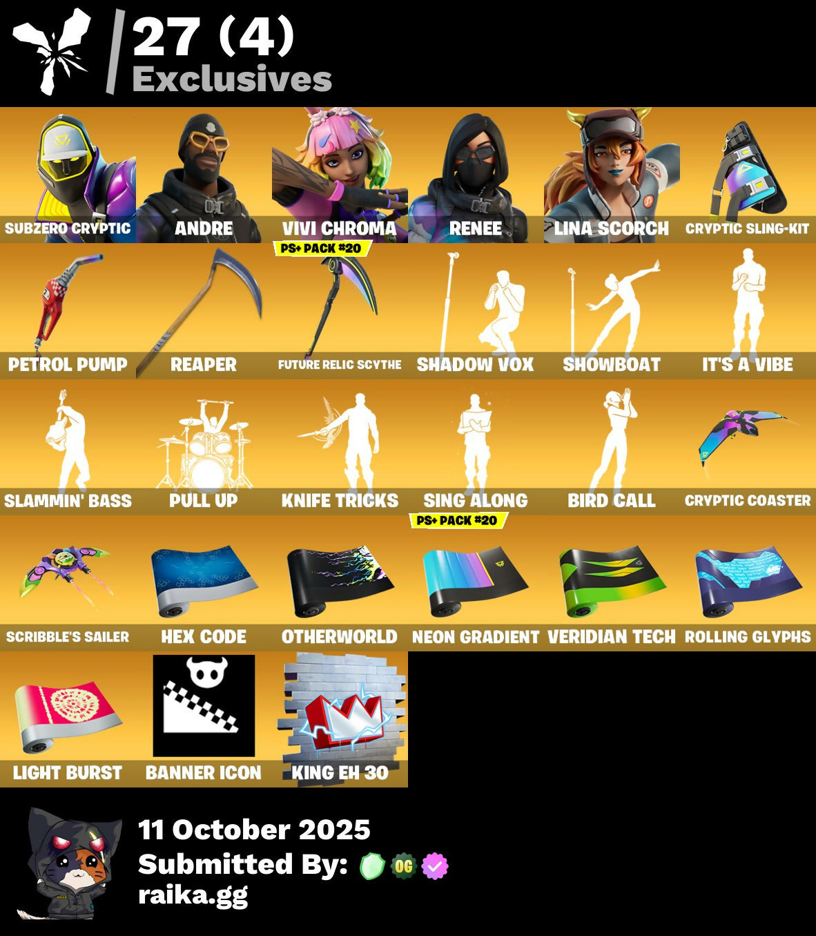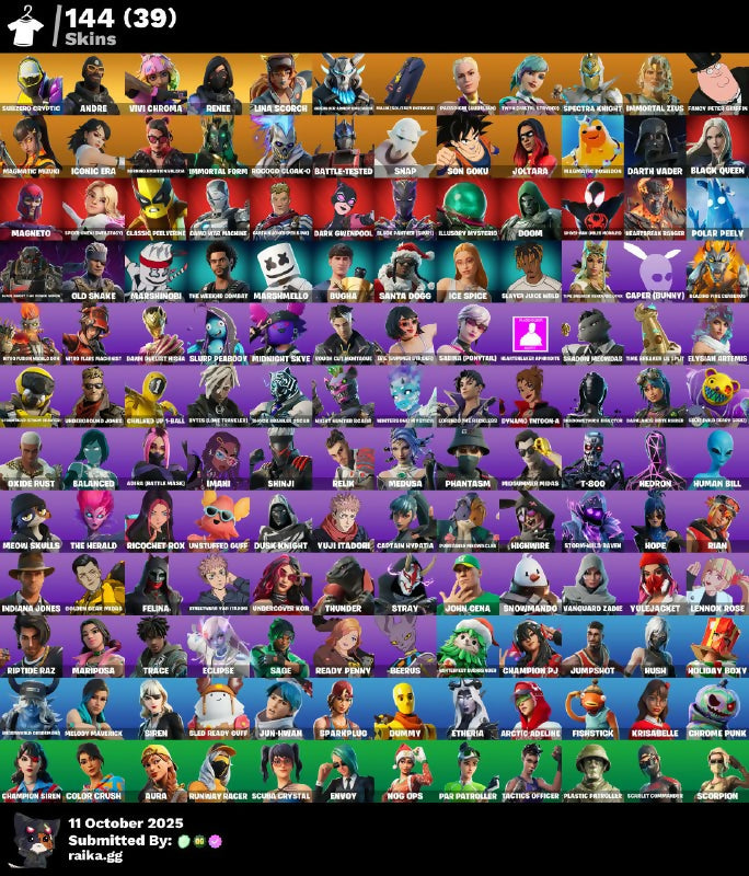[PC/PSN/XBOX] 144 skins | Subzero Cryptic | Andre | Vivi Chroma | Renee | Lina Scorch | Harbinger Armor Omegarok | Malik (Solitary Defender) | 250 VB #a12
